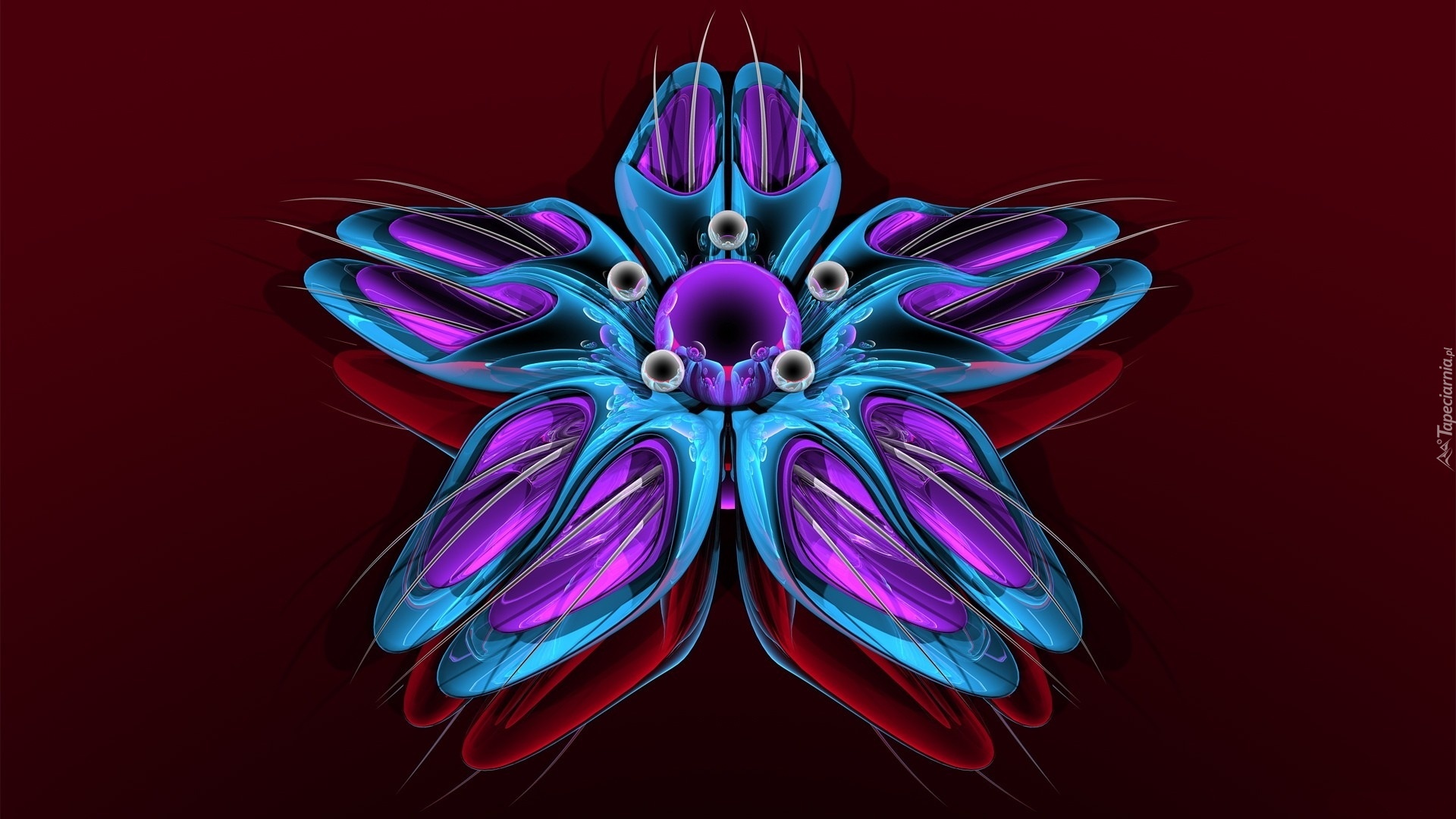 Edytor tapety: Niebieski, Kwiat, Grafika 3D