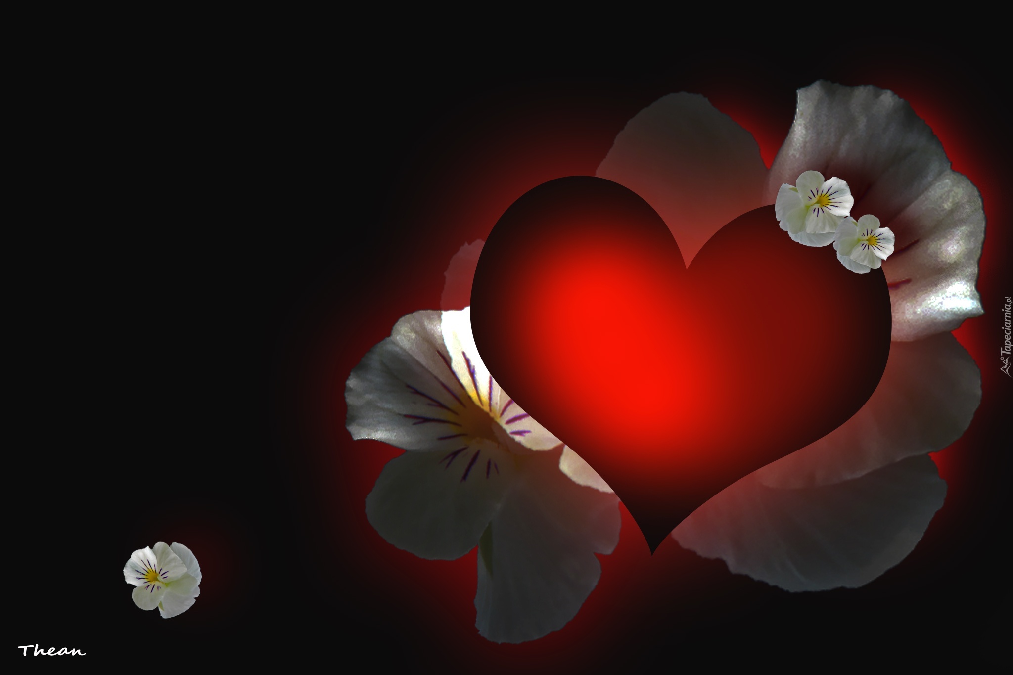 Edytor tapety: Czerwone, Serduszko, Białe, Bratki