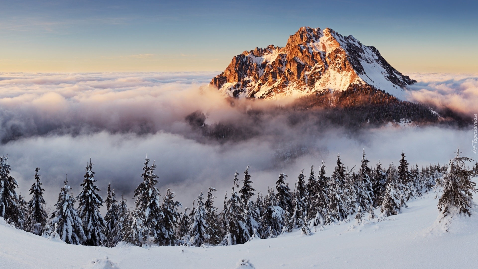 Edytor tapety: Szczyt, Góry, W, Chmurach, Zima