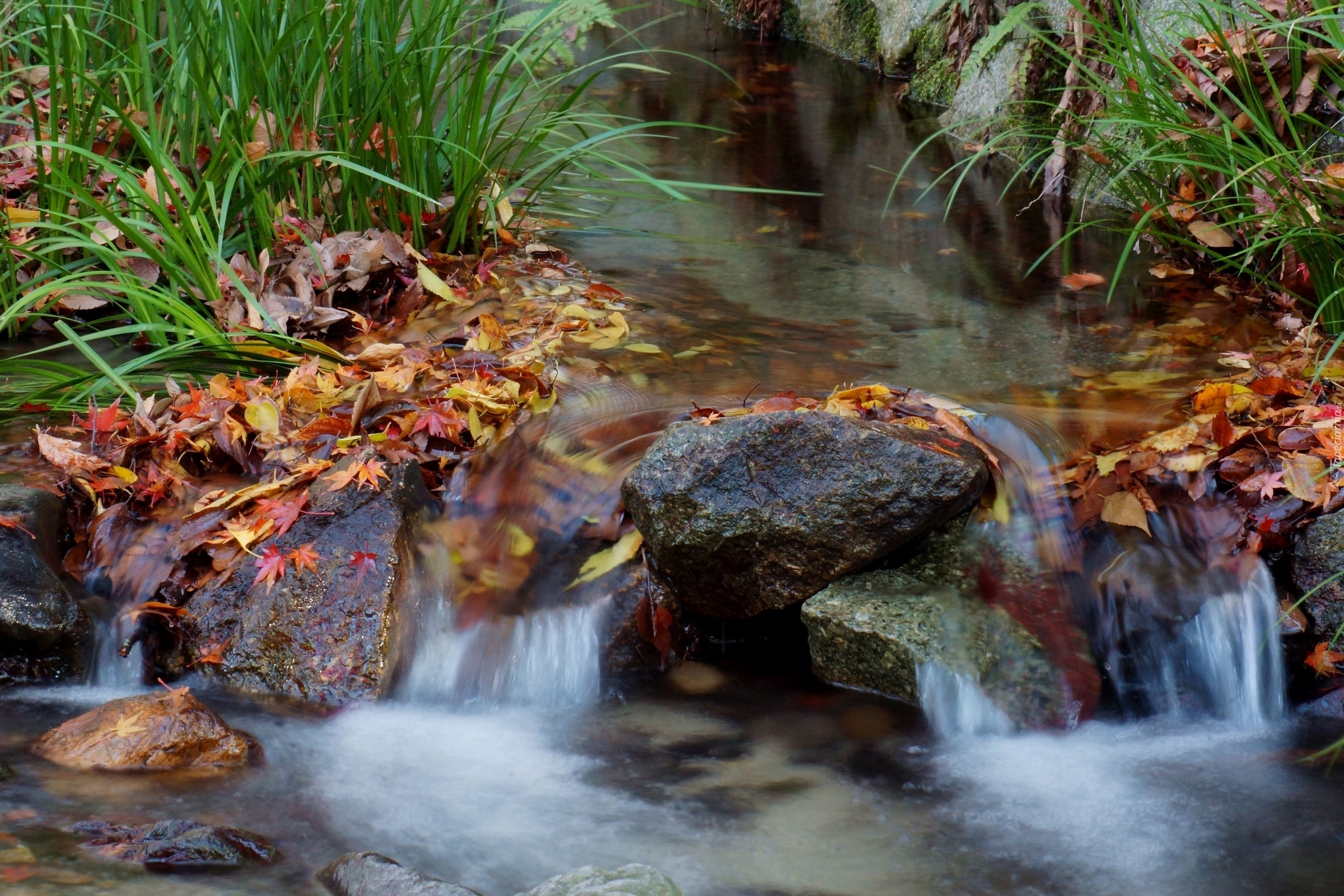 Edytor tapety: Rzeka, Kamienie, Liście