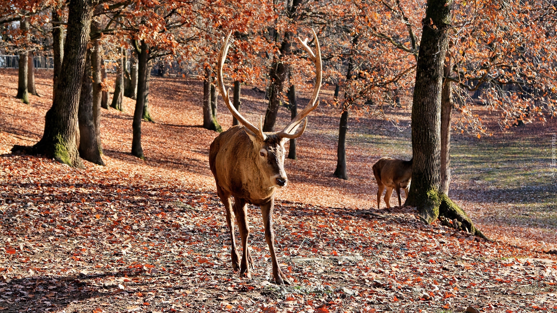 Edytor tapety: Jeleń, Las, Jesień, Liście