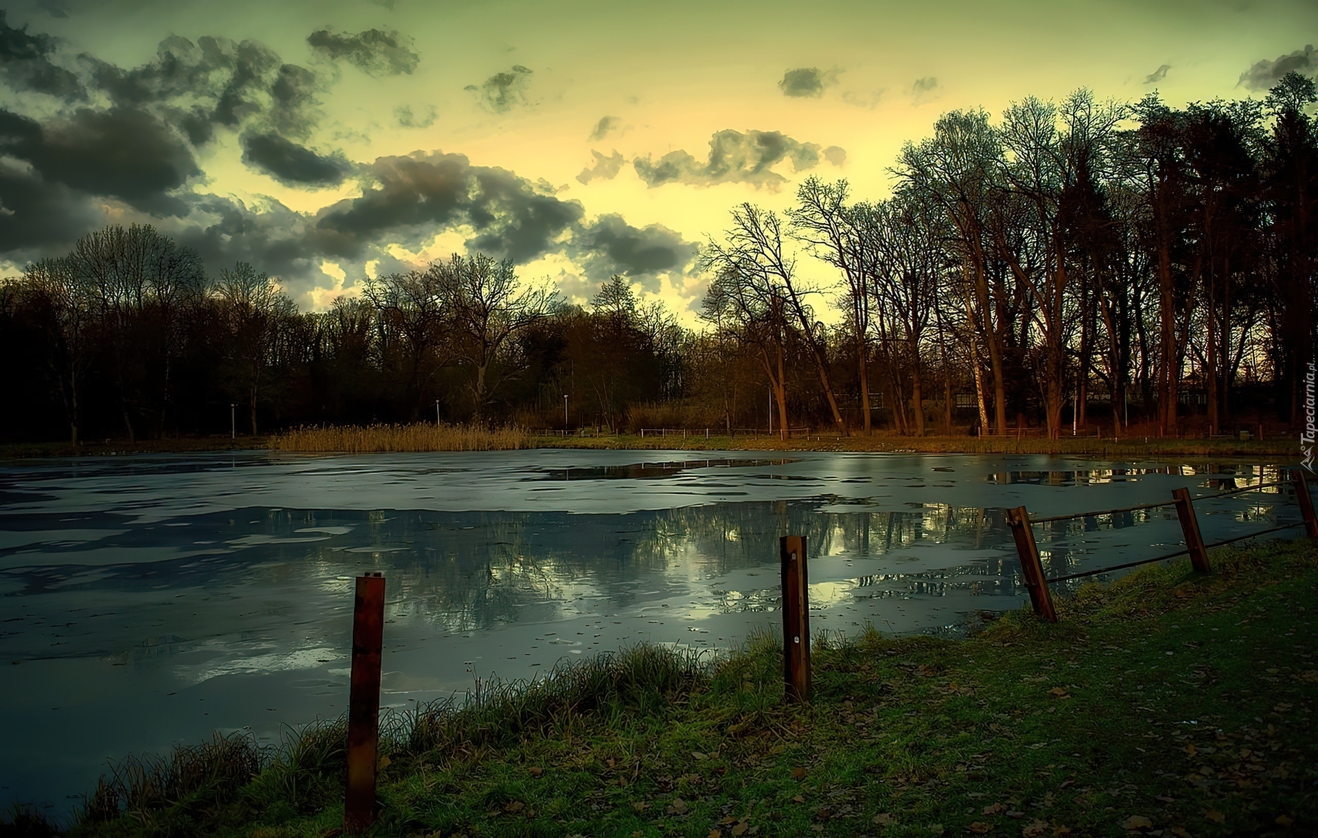 Edytor tapety: Jezioro, Chmury, Jesień, Drzewa
