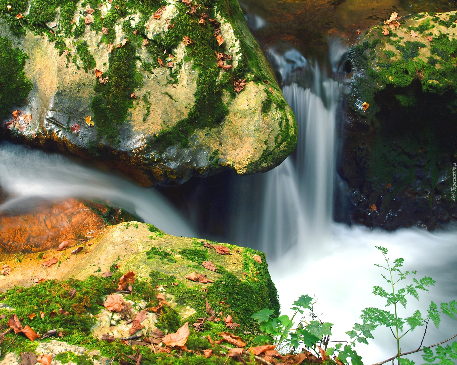 Edytor tapety: Jesień, Wodospad, Skały