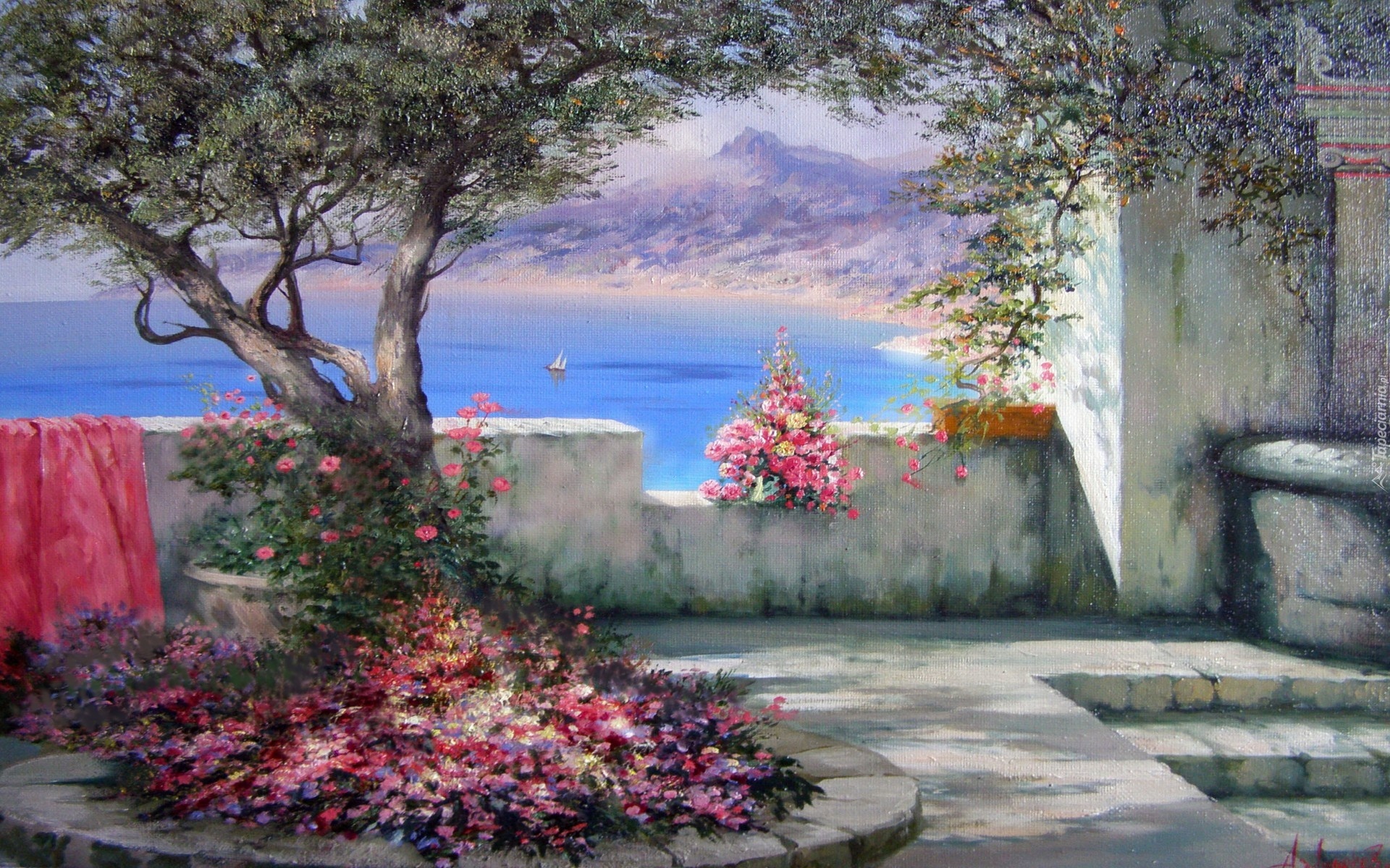 Edytor tapety: Obraz, Kwiaty, Drzewo, Woda, Aleksander Miliukov