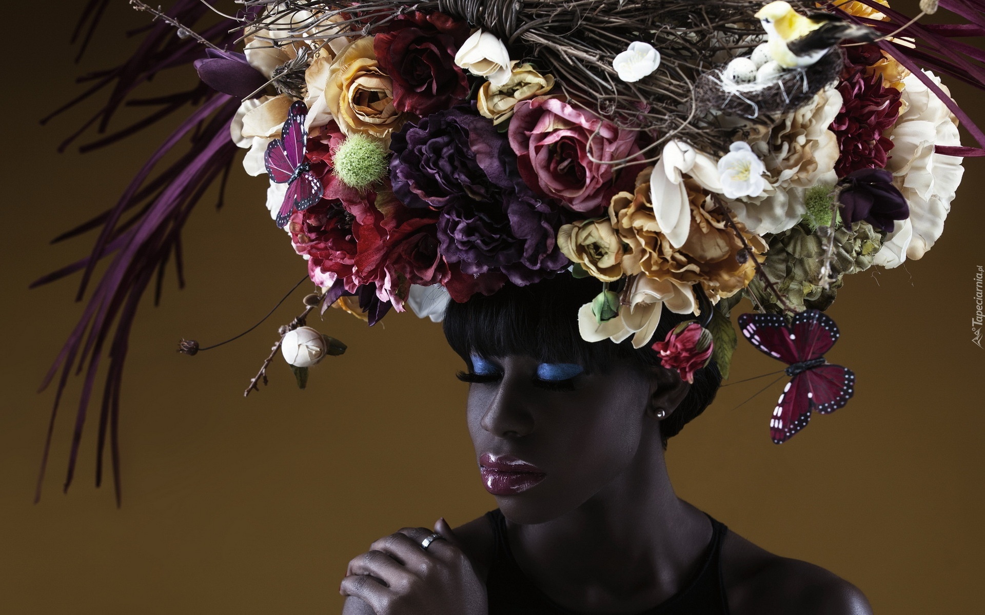 Edytor tapety: Kobieta, Makijaż, Kwiaty