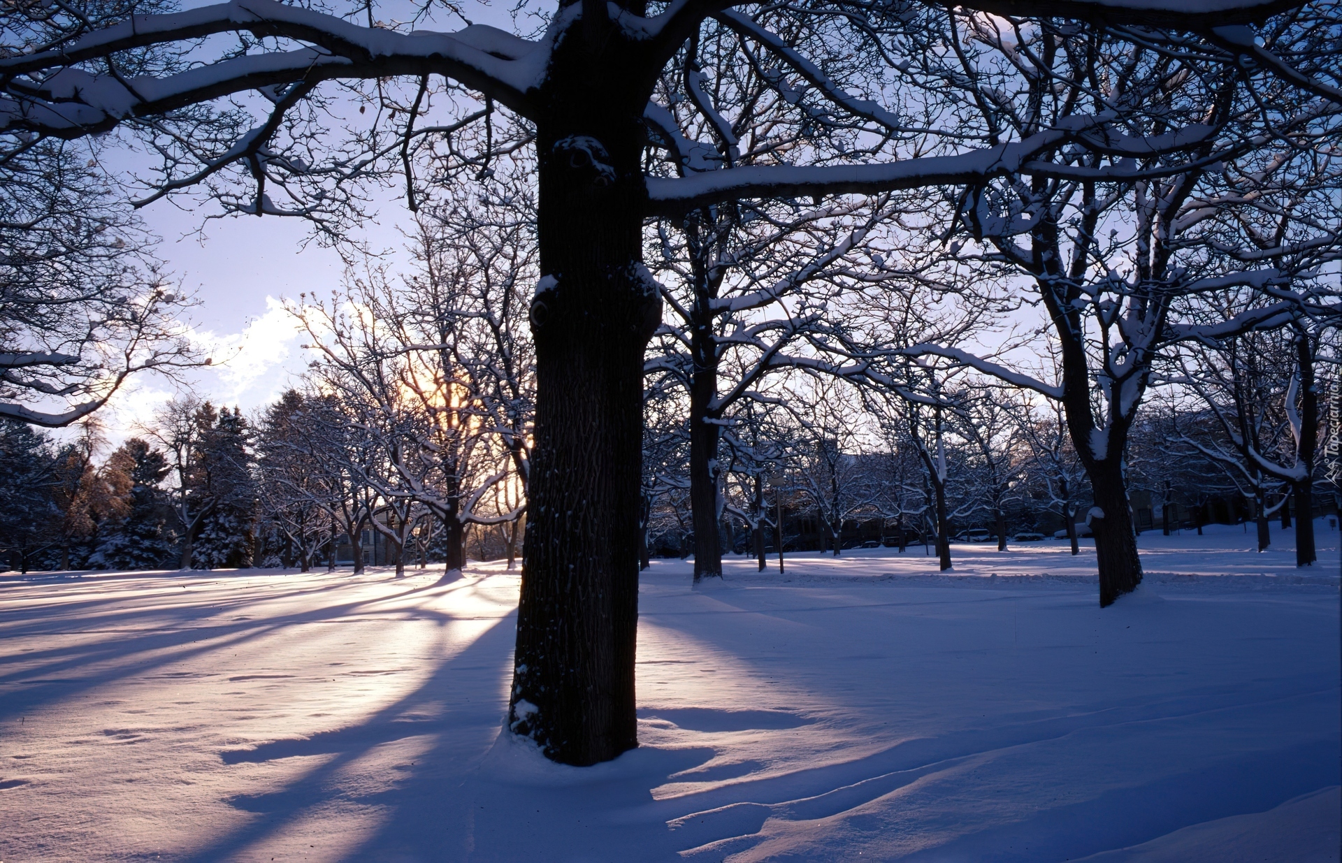 Edytor tapety: Zima, Drzewa, Przebijające Światło