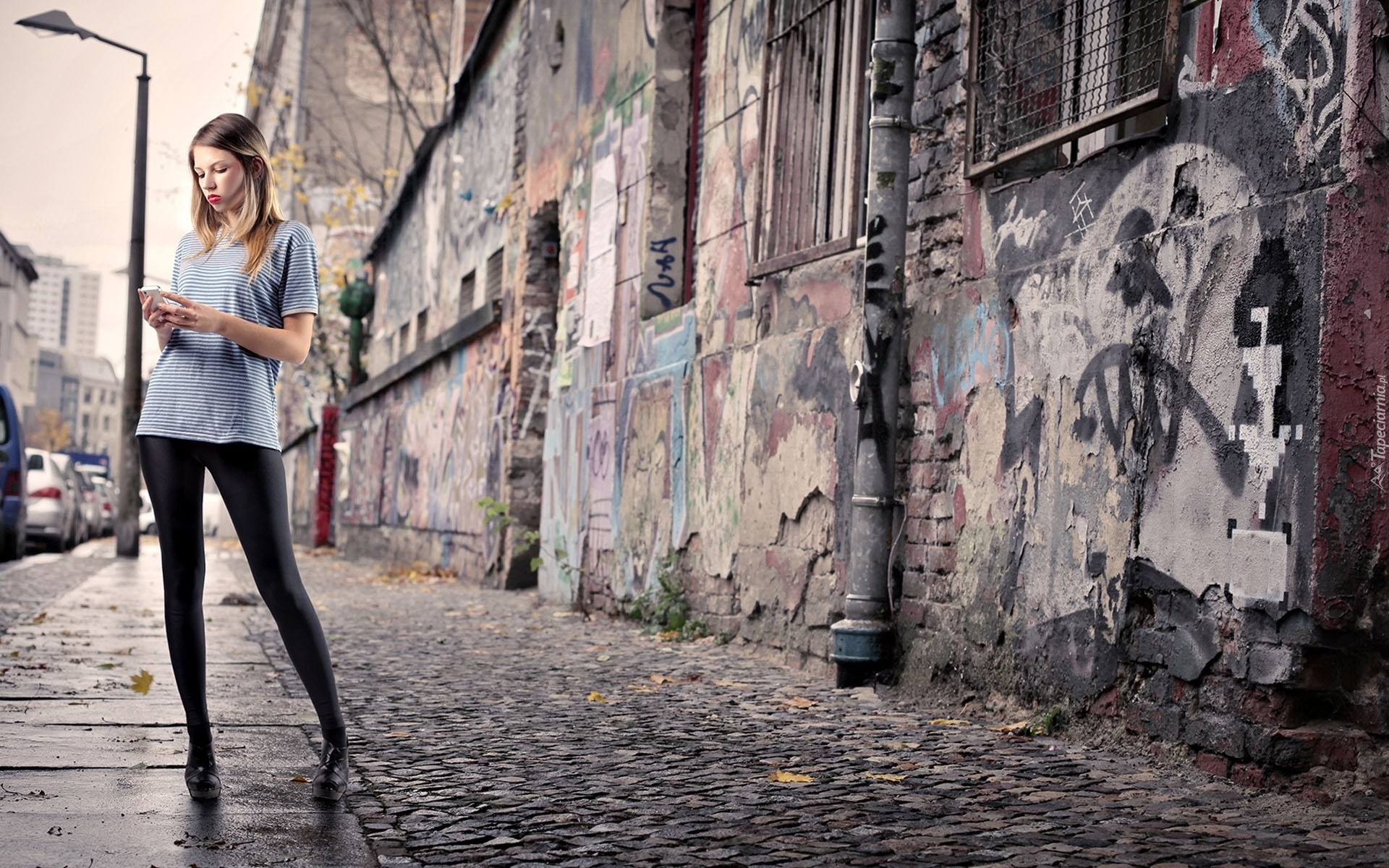 Edytor tapety: Dziewczyna, Telefon, Legginsy