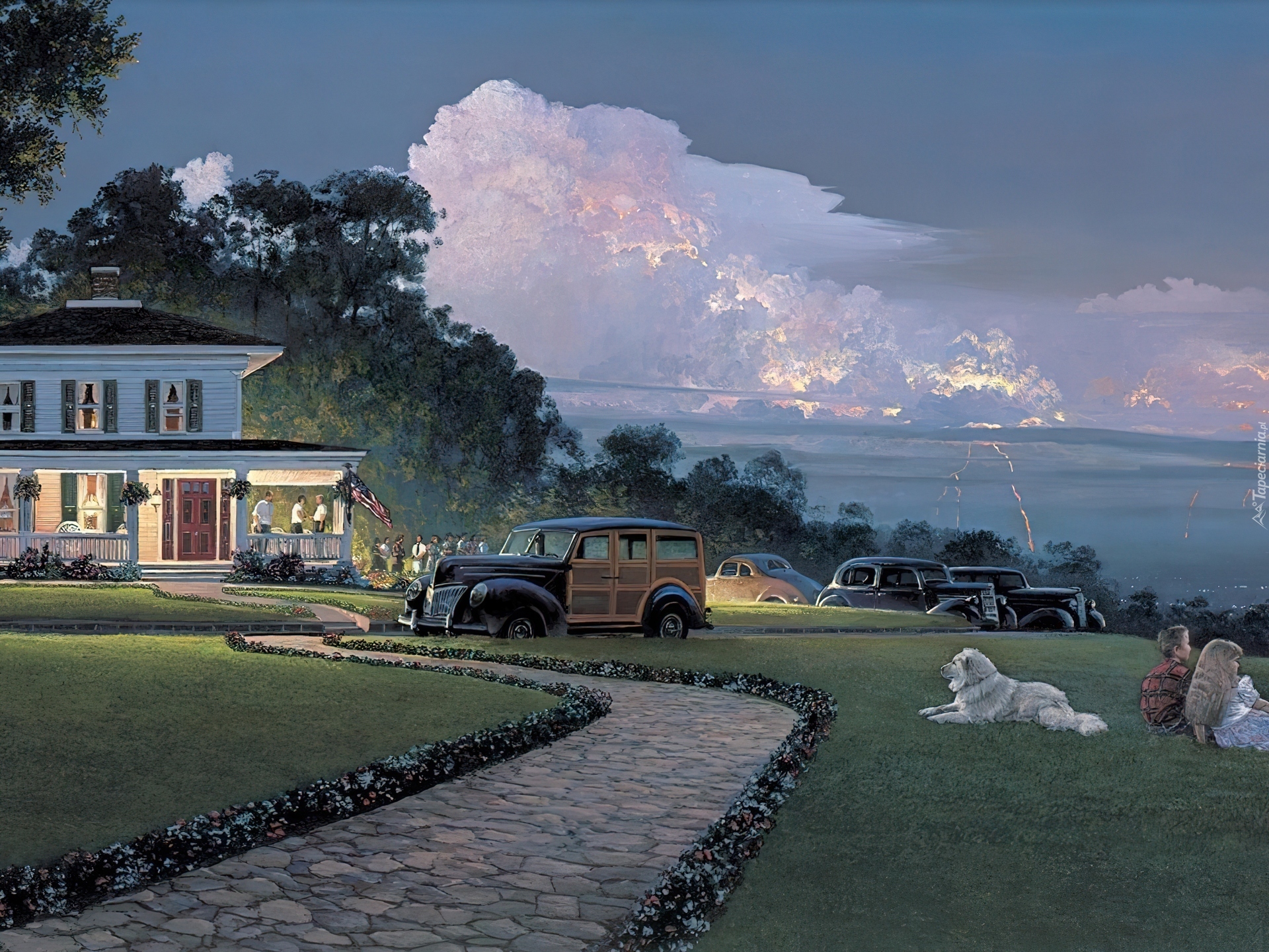 Edytor tapety: Droga, Dom, Auta, Dzieci, Pies