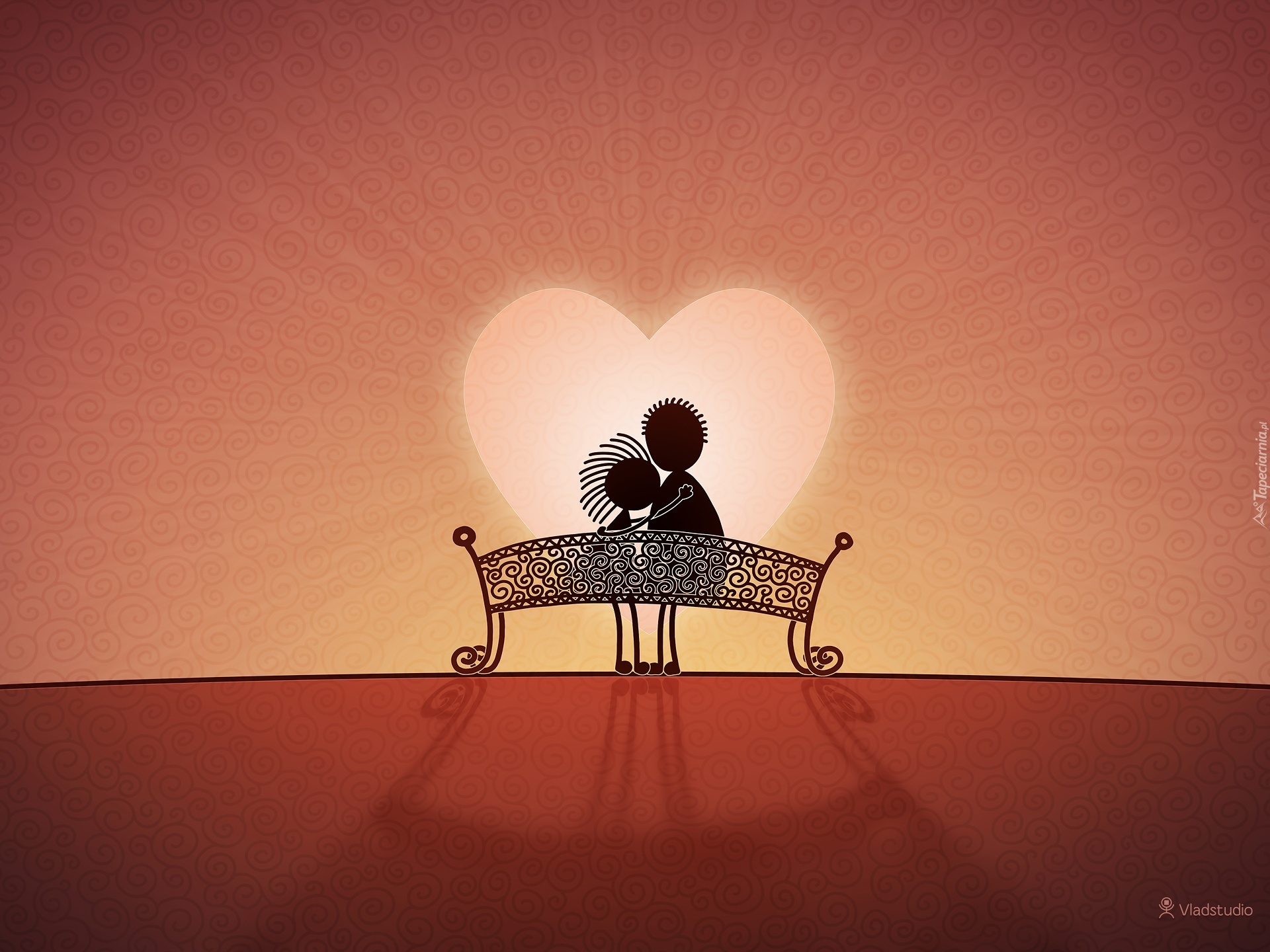 Edytor tapety: Vladstudio, Walentynki, Zakochana, Para, Ławka, Serce