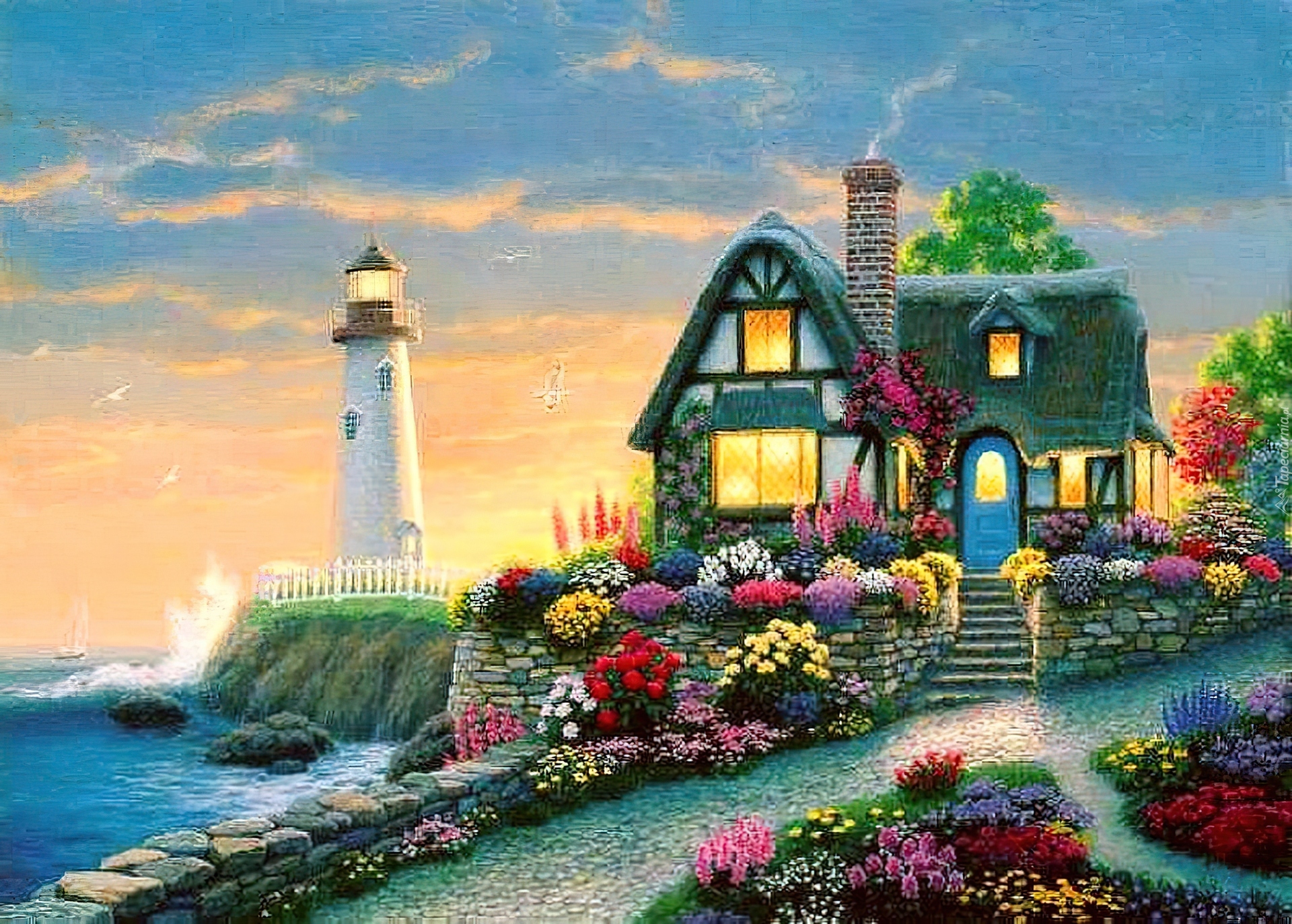 Edytor tapety: Dom, Latarnia, Morska, Droga, Morze