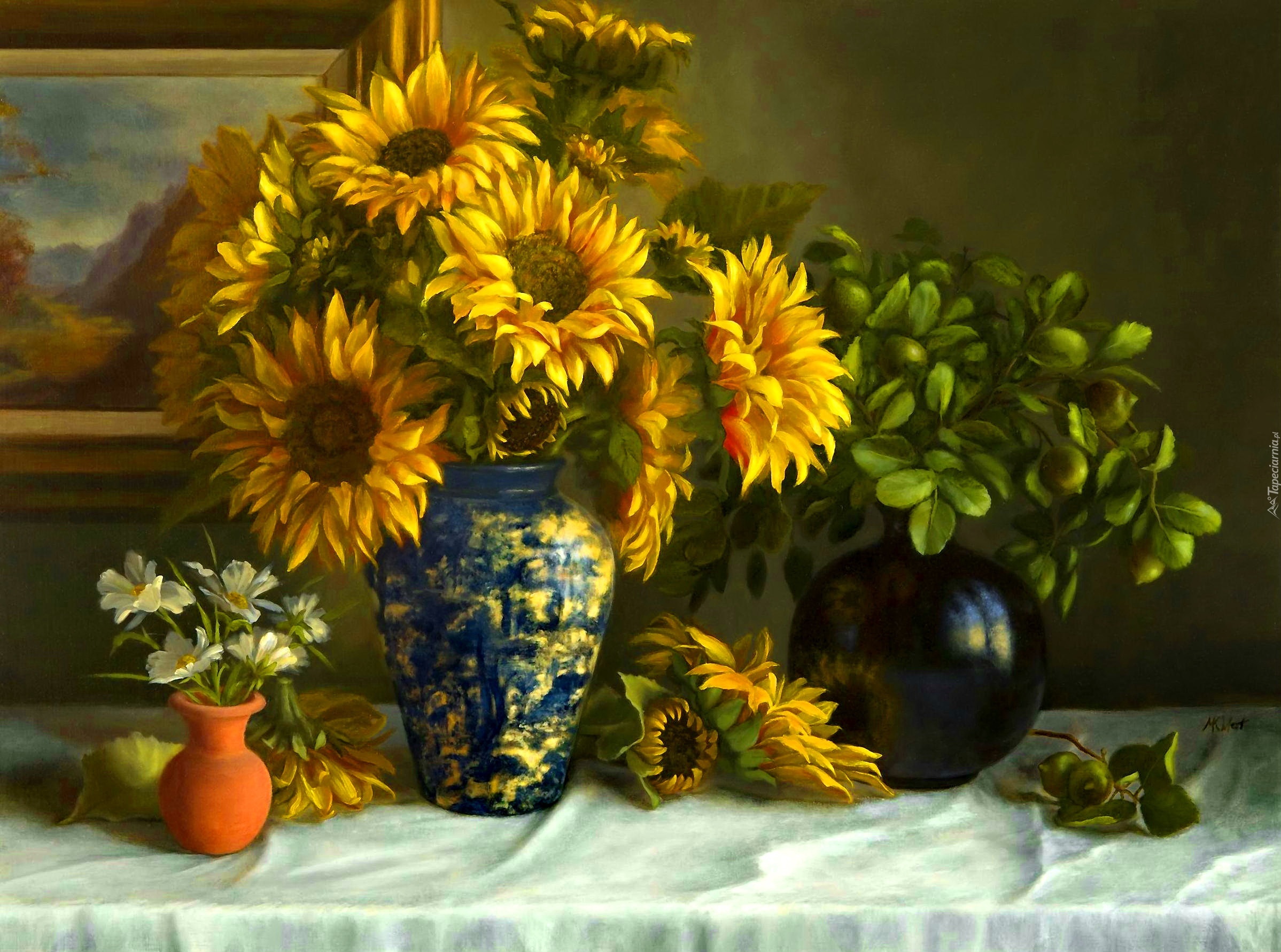 Edytor tapety: Wazon, Słoneczniki, Ozdobne