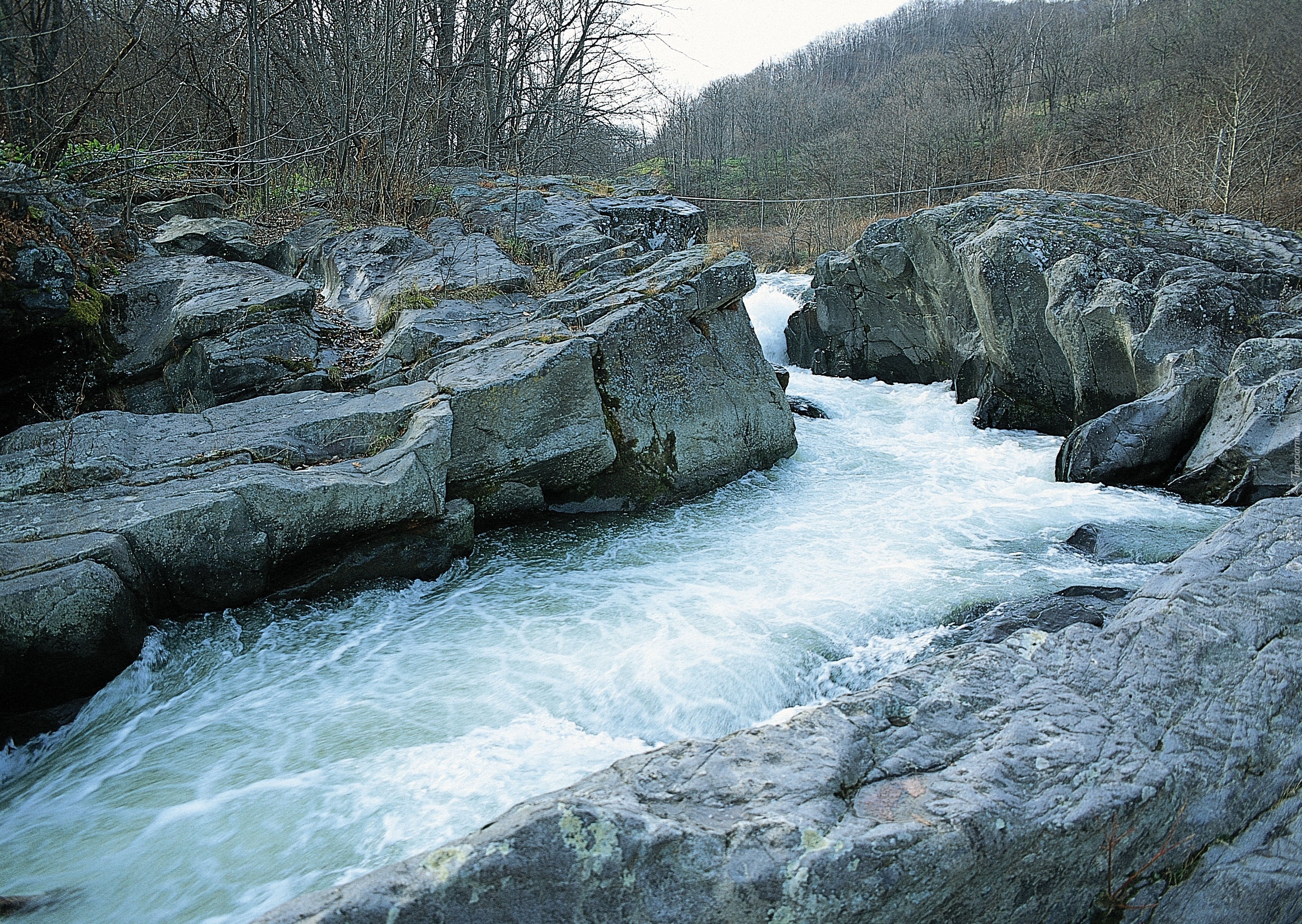 Edytor tapety: Rwąca, Rzeka, Skały, Drzewa