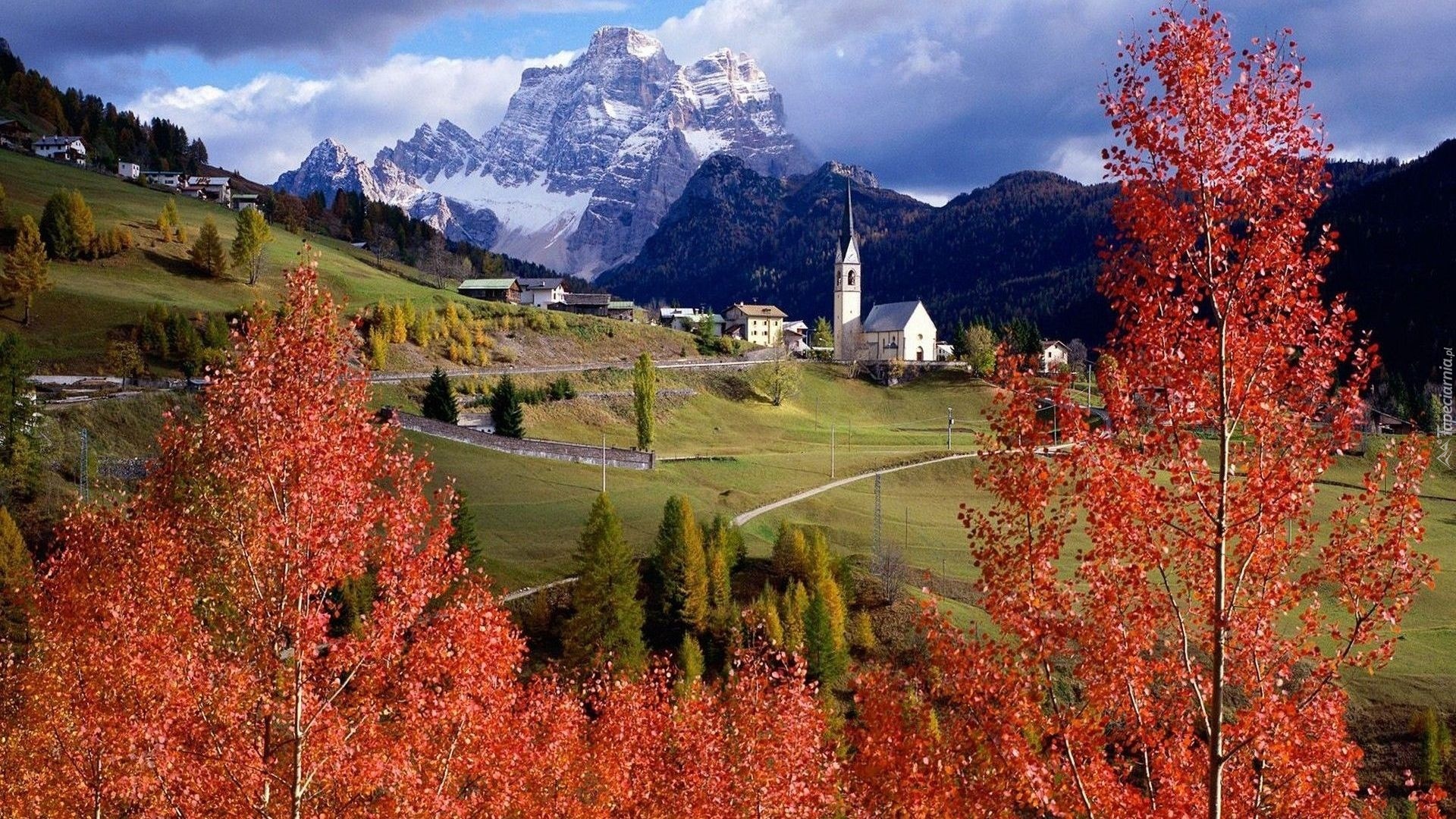 Edytor tapety: Góry, Drzewa, Łąka