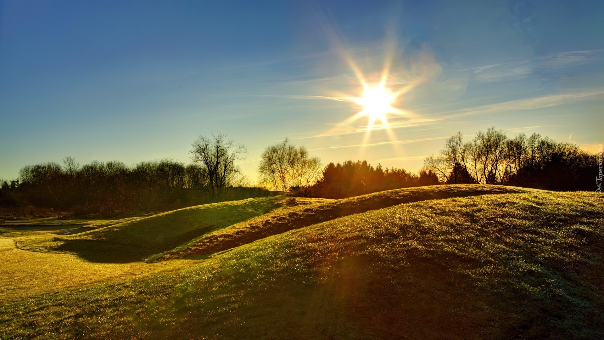 Edytor tapety: Łąka, Pagórki, Wschód, Słońca