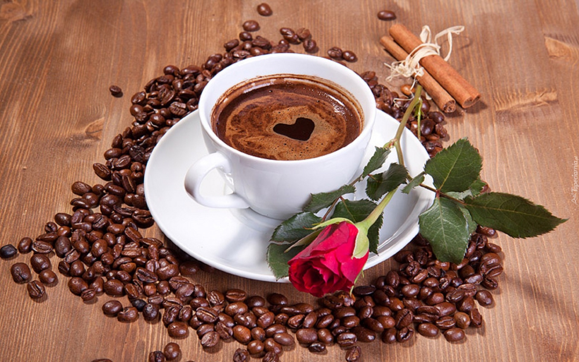 Edytor tapety: Róża, Filiżanka, Kawy, Ziarna