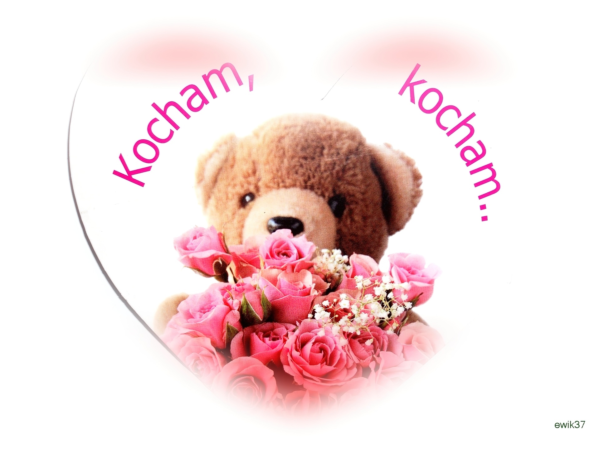 Edytor tapety: Serce, Pluszowy, Miś, Róże