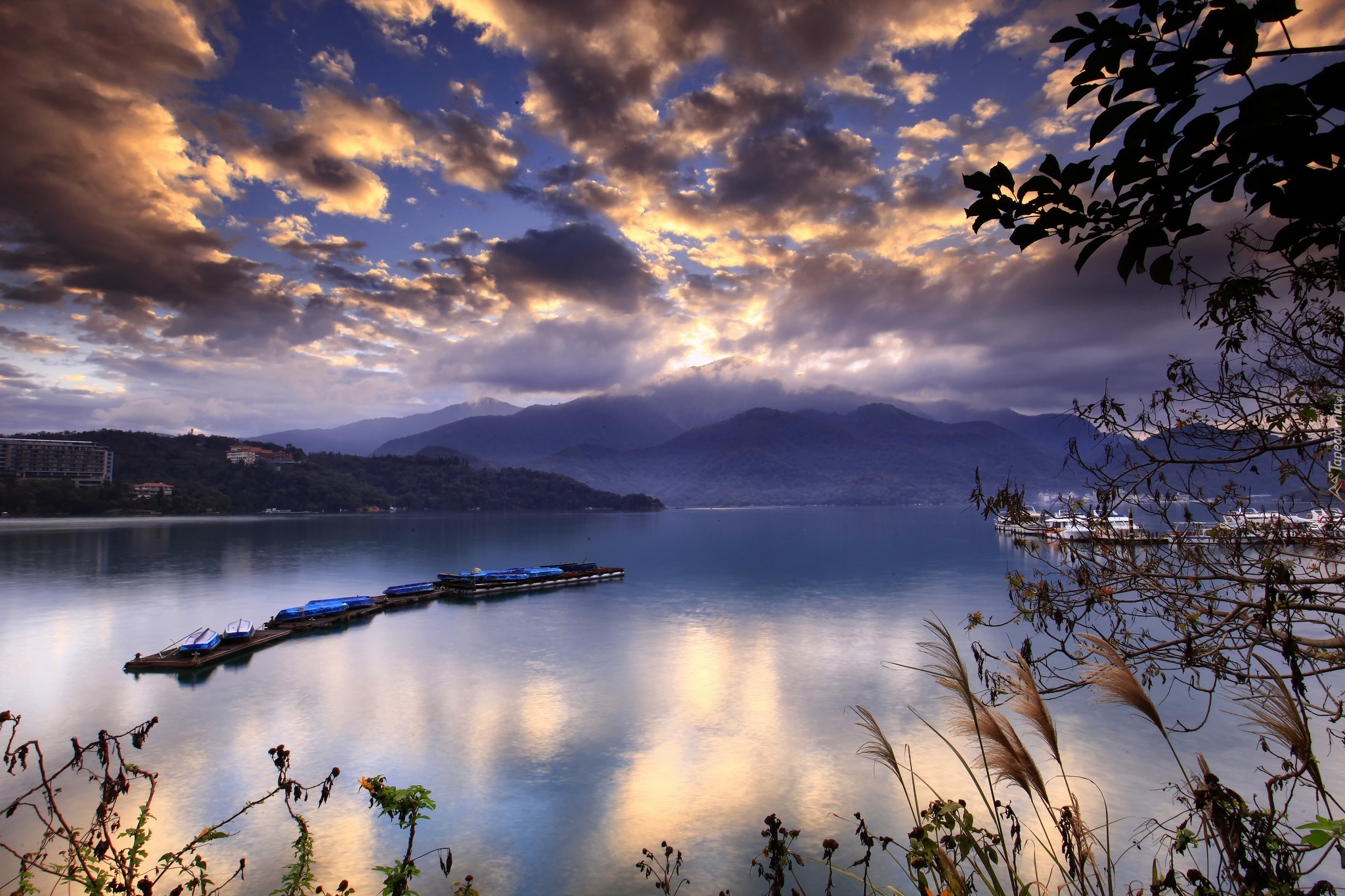 Edytor tapety: Zachód, Słońca, Góry, Jezioro