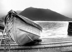 Edytor tapety: Zachód, Słońca, Góra, Jezioro, Łódka