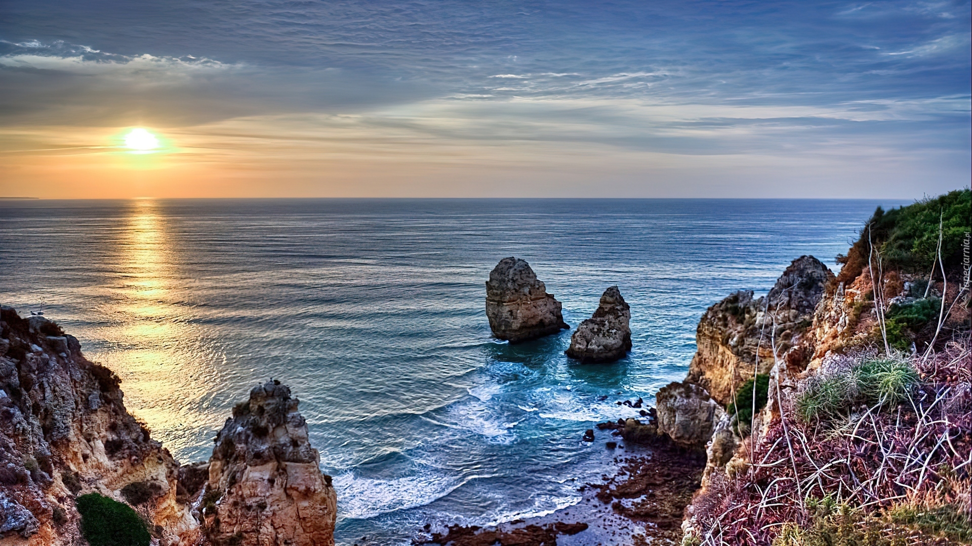 Edytor tapety: Skały, Morze, Zachód, Słońca