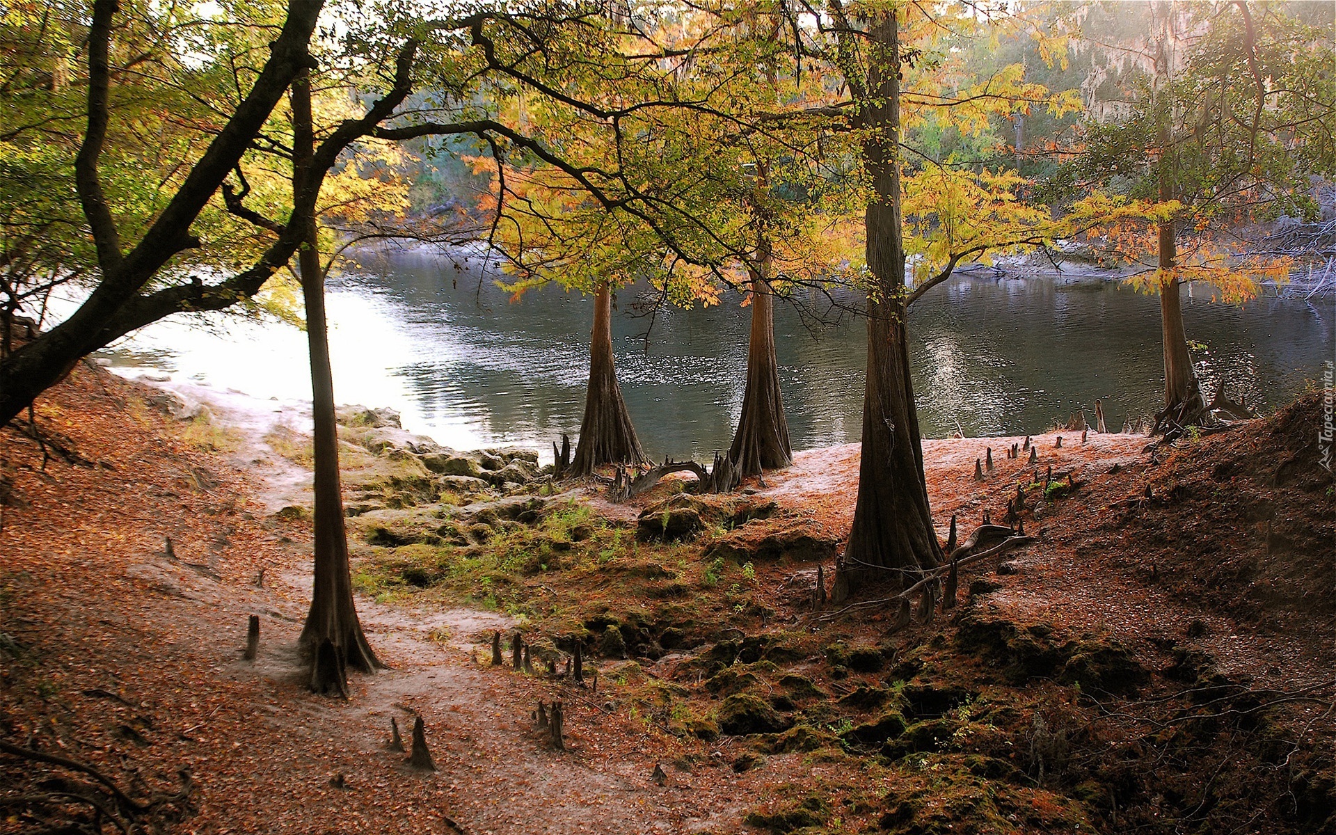 Edytor tapety: Rzeka, Drzewa, Jesień