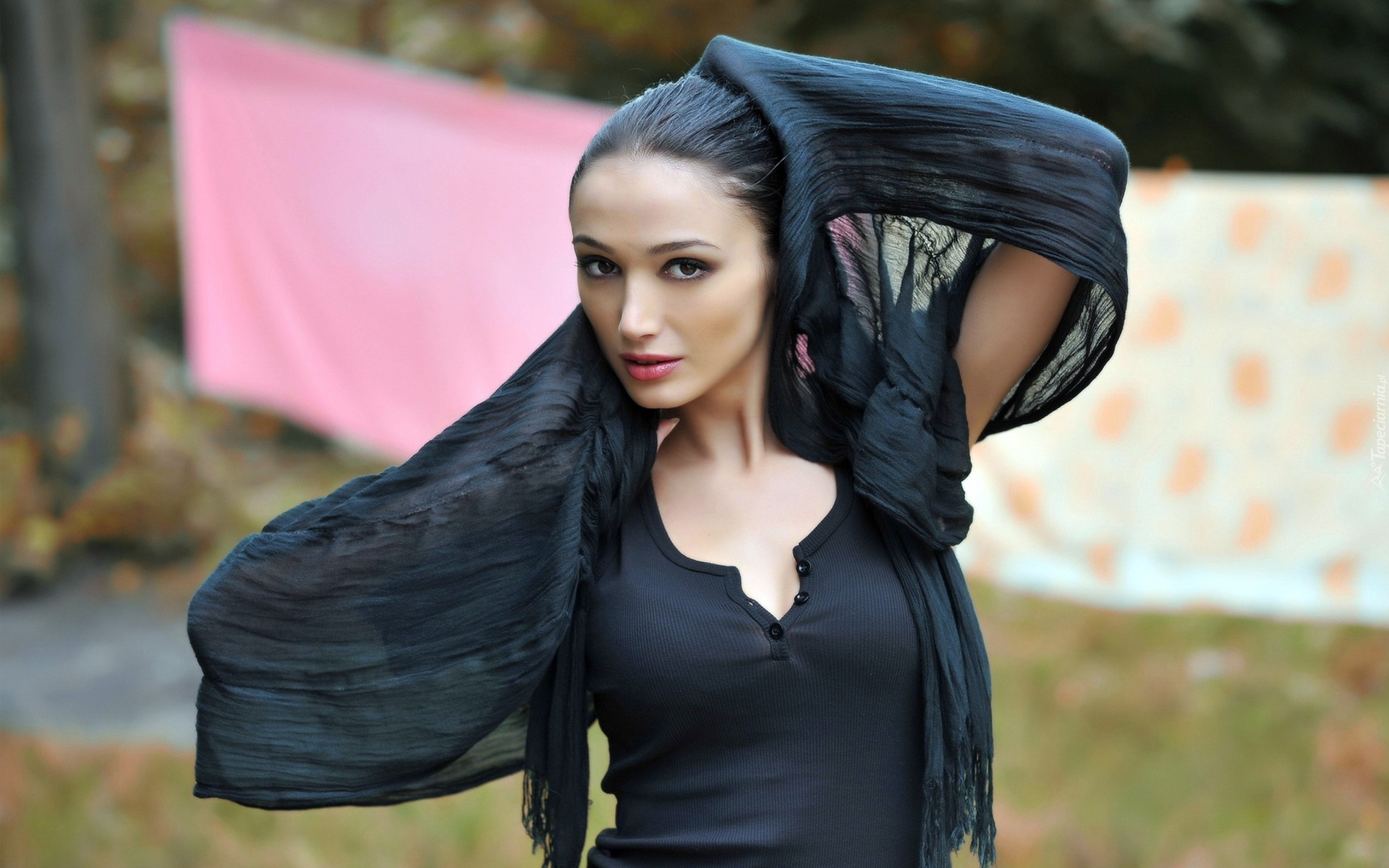 Edytor tapety: Brunetka, Makijaż, Szal