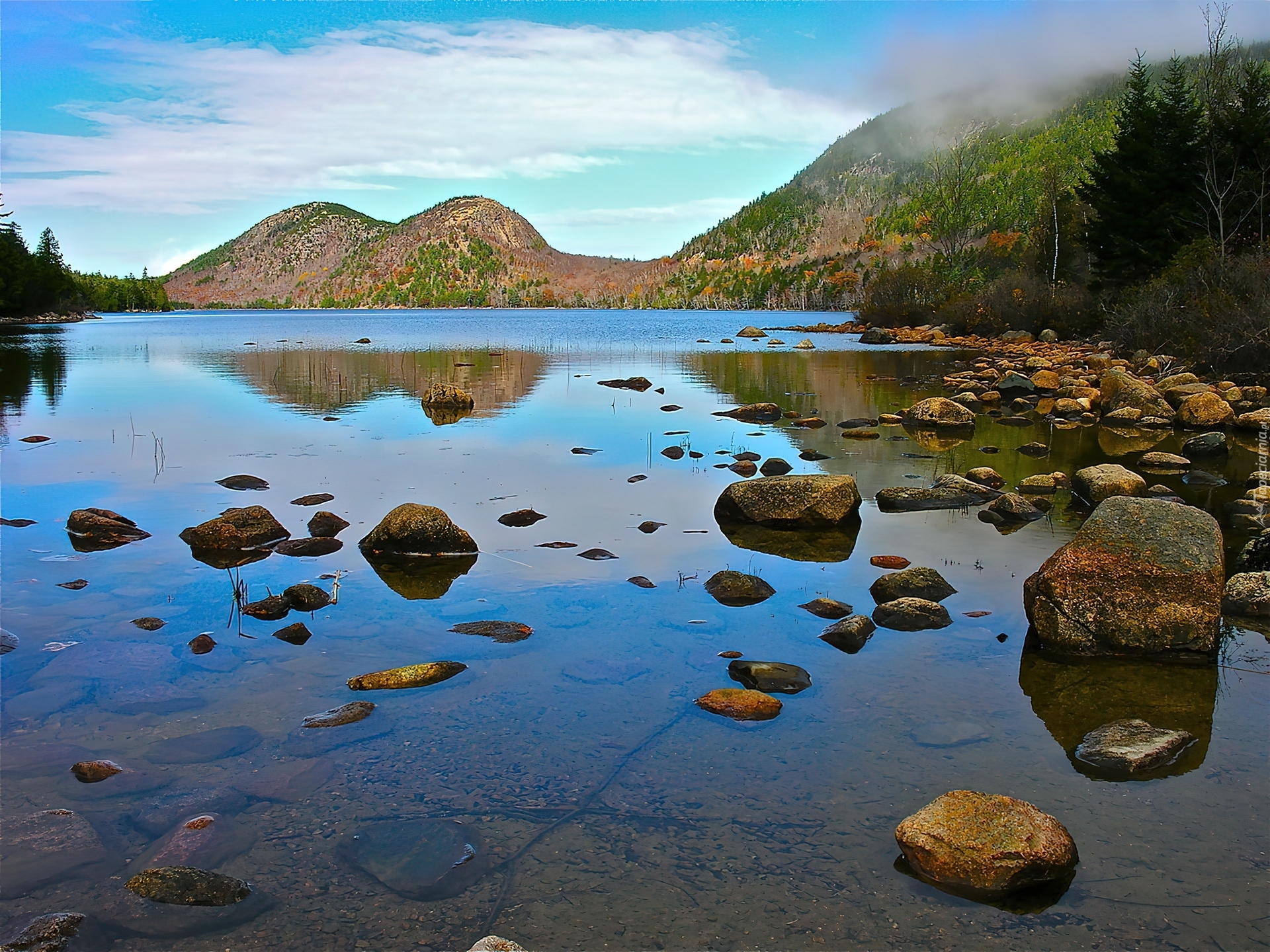 Edytor tapety: Stany Zjednoczone, Stan Maine, Park Narodowy Acadia, Jezioro Jordan Pond, Kamienie, Góry
