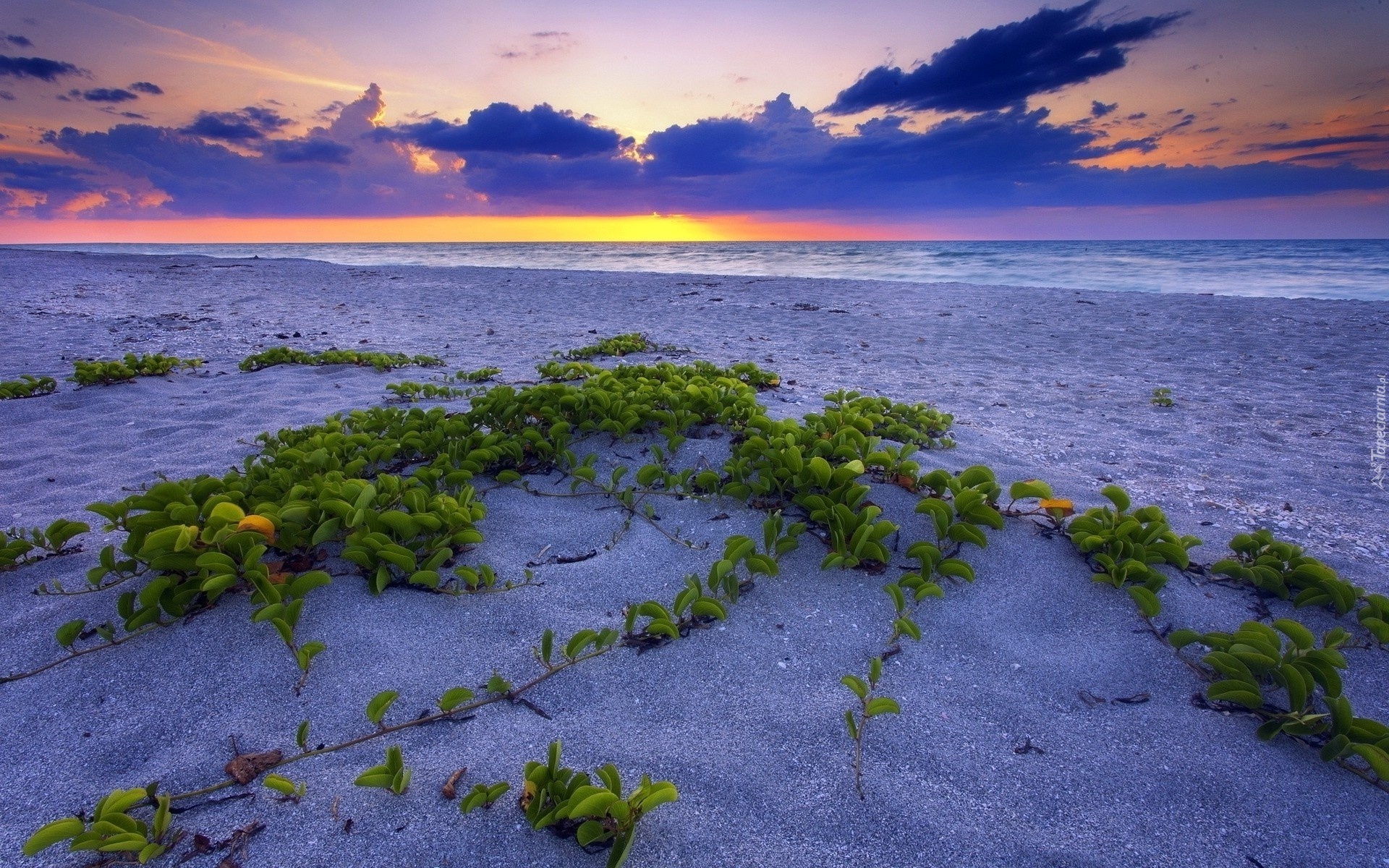 Edytor tapety: Wschód, Słońca, Morze, Brzeg, Rośliny