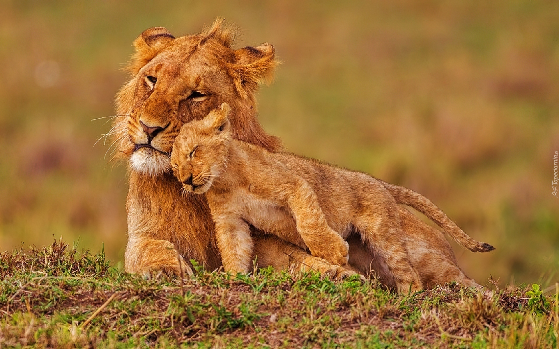 Edytor tapety: Lew, Młode, Czułość
