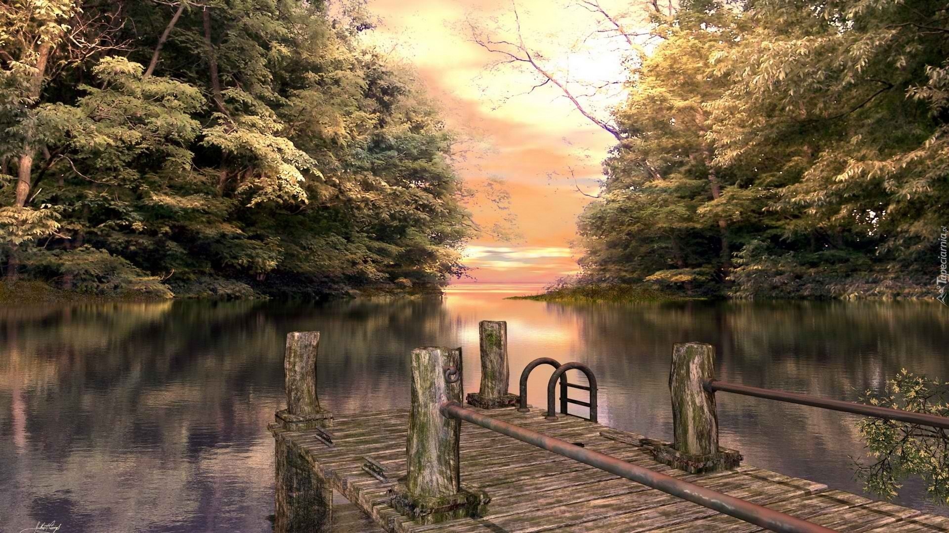 Edytor tapety: Rzeka, Drzewa, Pomost