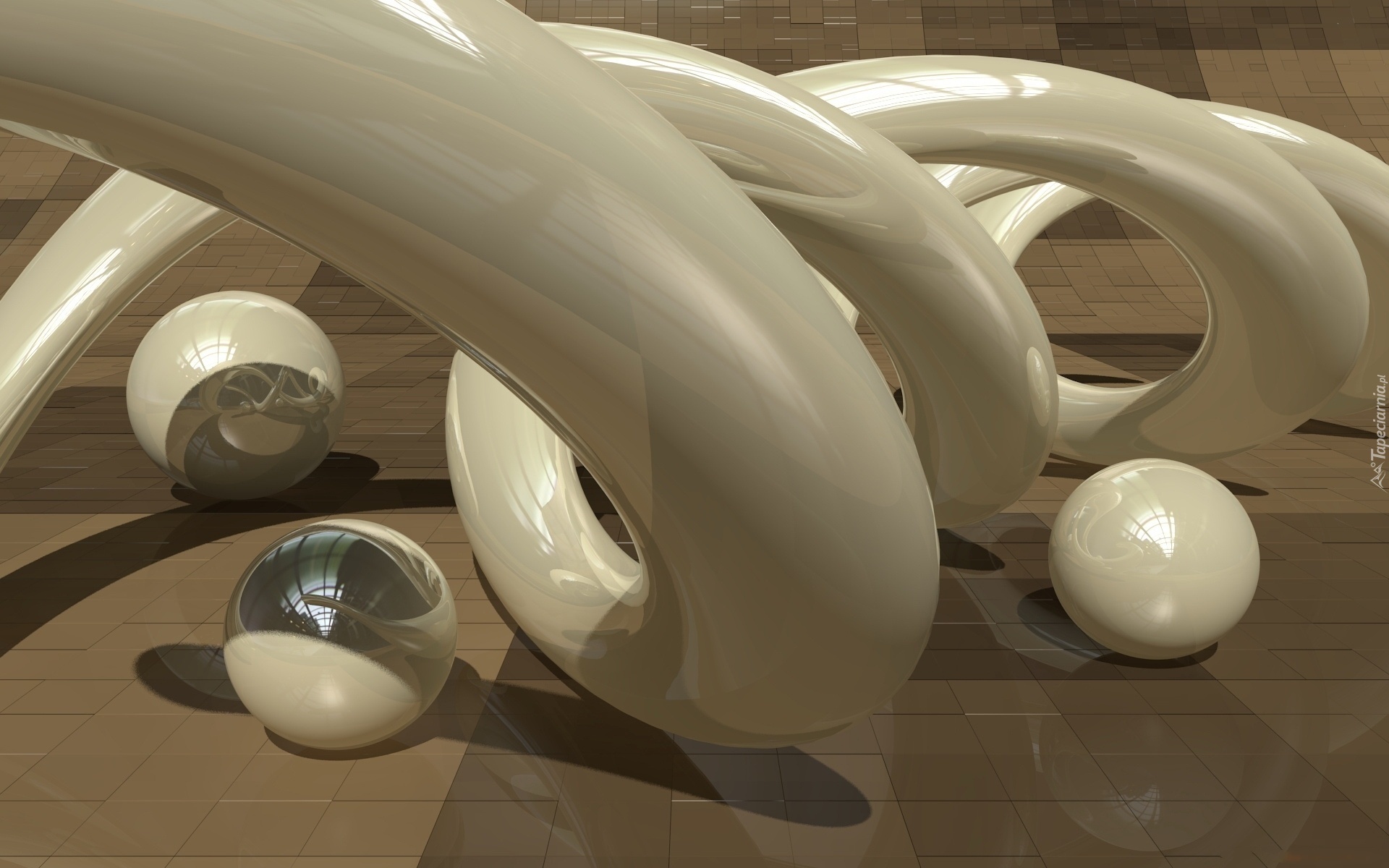 Edytor tapety: Białe, Kulki, Spirala, Grafika 3D