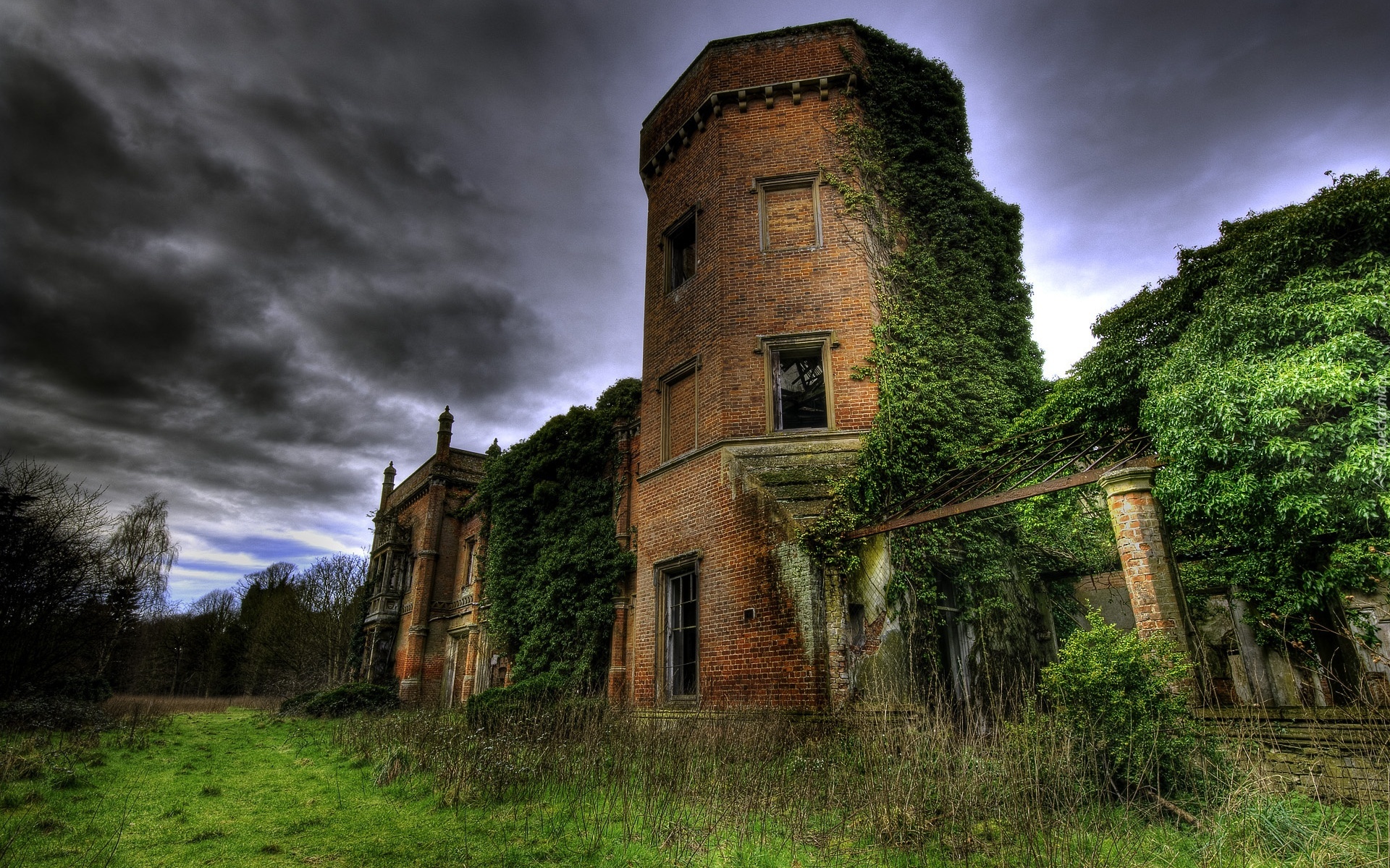 Edytor tapety: Ruiny, Pokryte, Roślinami, Burzowe, Chmury
