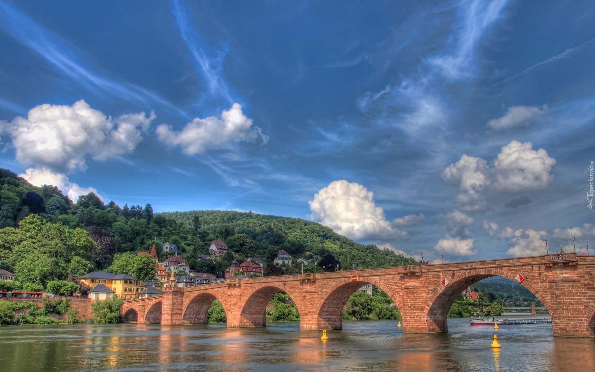 Edytor tapety: Rzeka, Most, Góry, Chmury