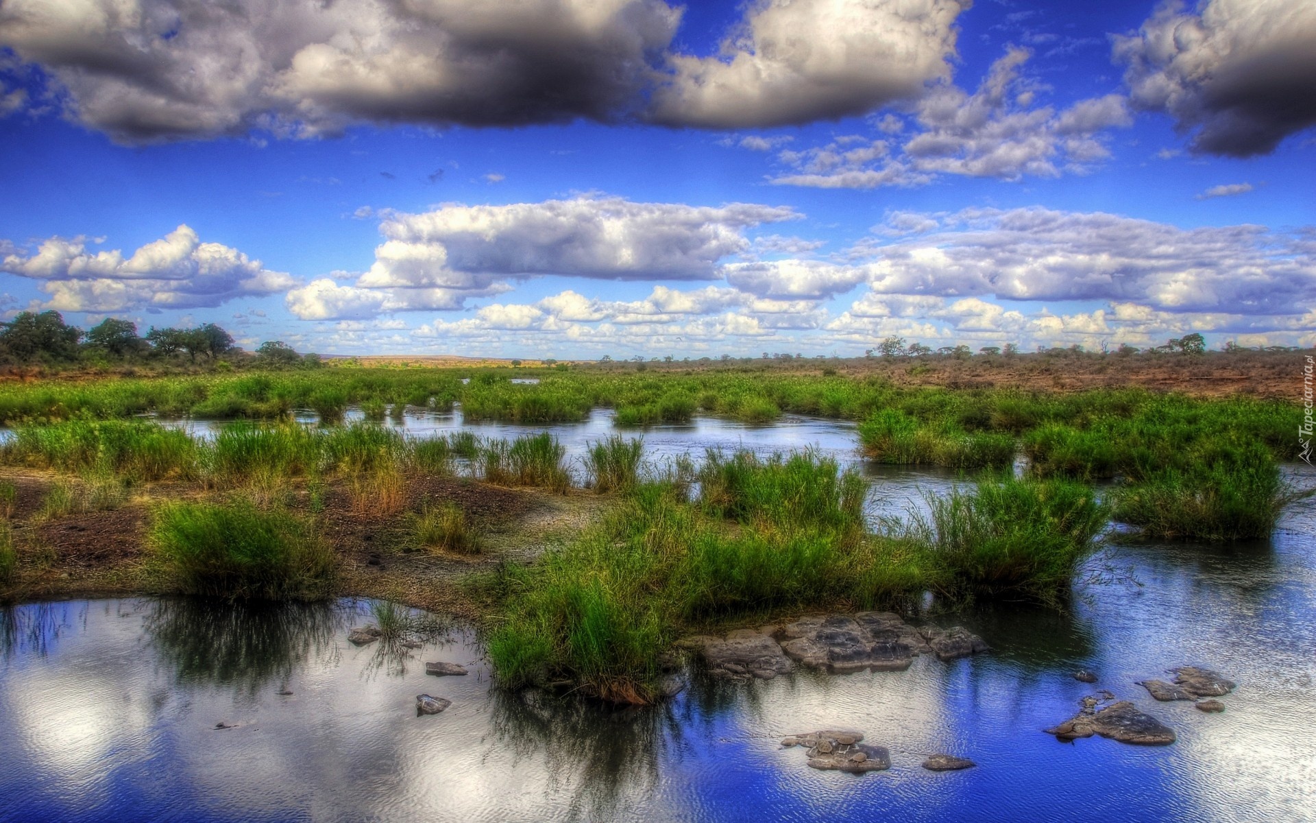 Edytor tapety: Woda, Trawa, Chmury