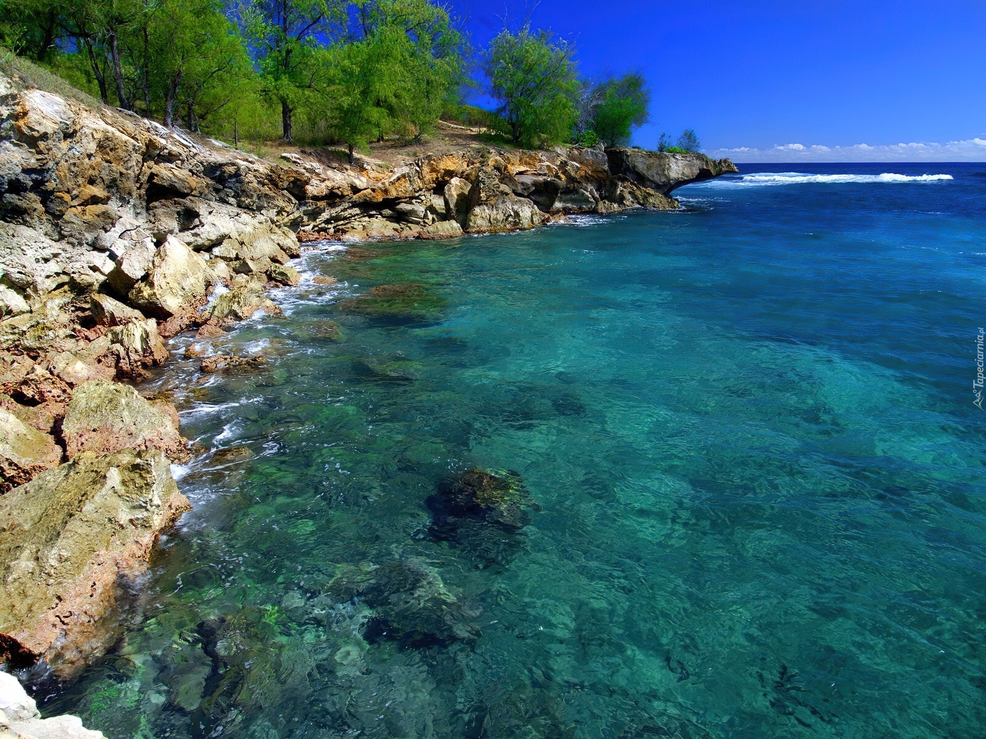 Edytor tapety: Morze, Skalisty, Brzeg, Drzewa, Kauai, Hawaje