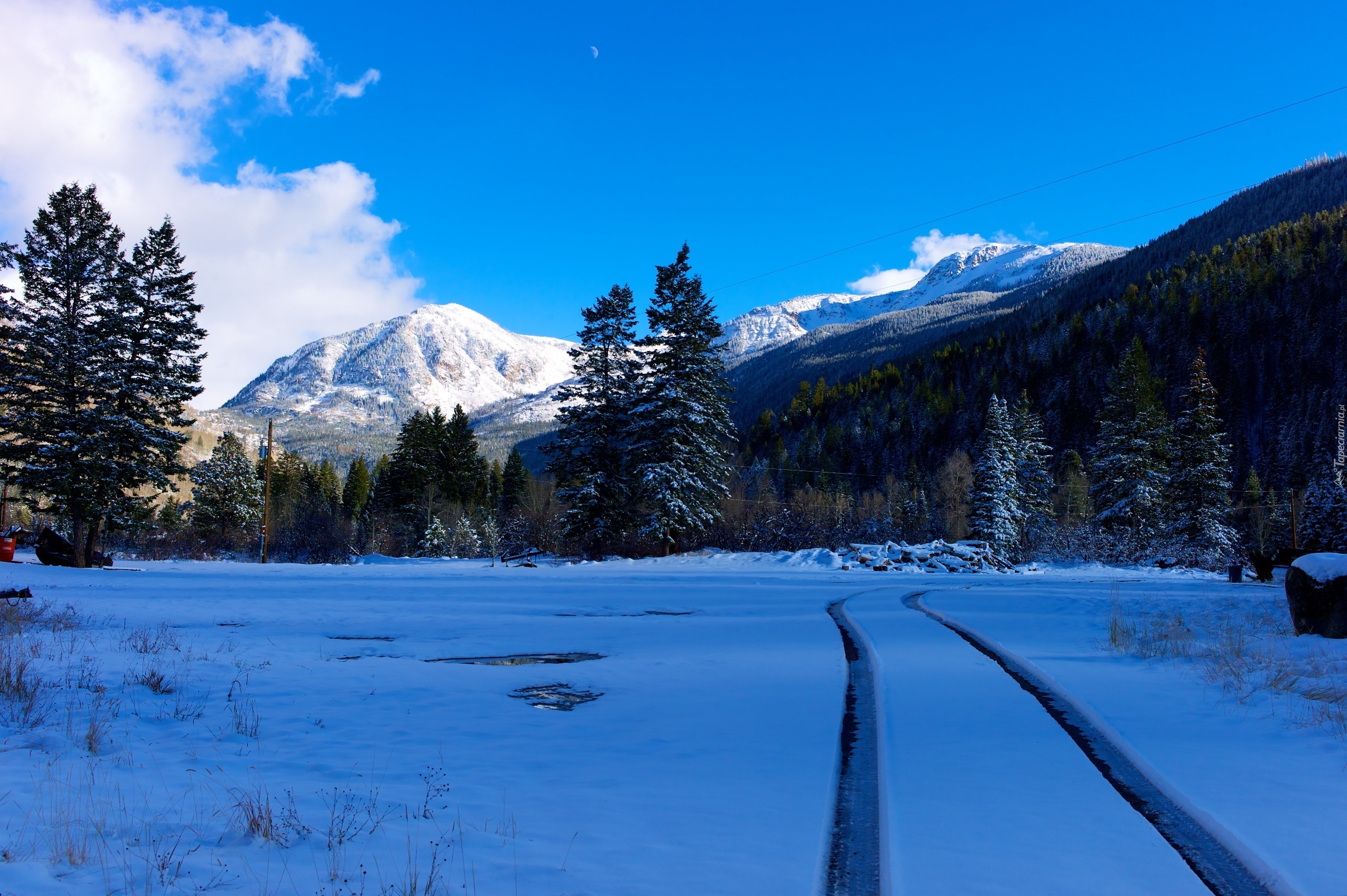 Edytor tapety: Zima, Drzewa, Góry