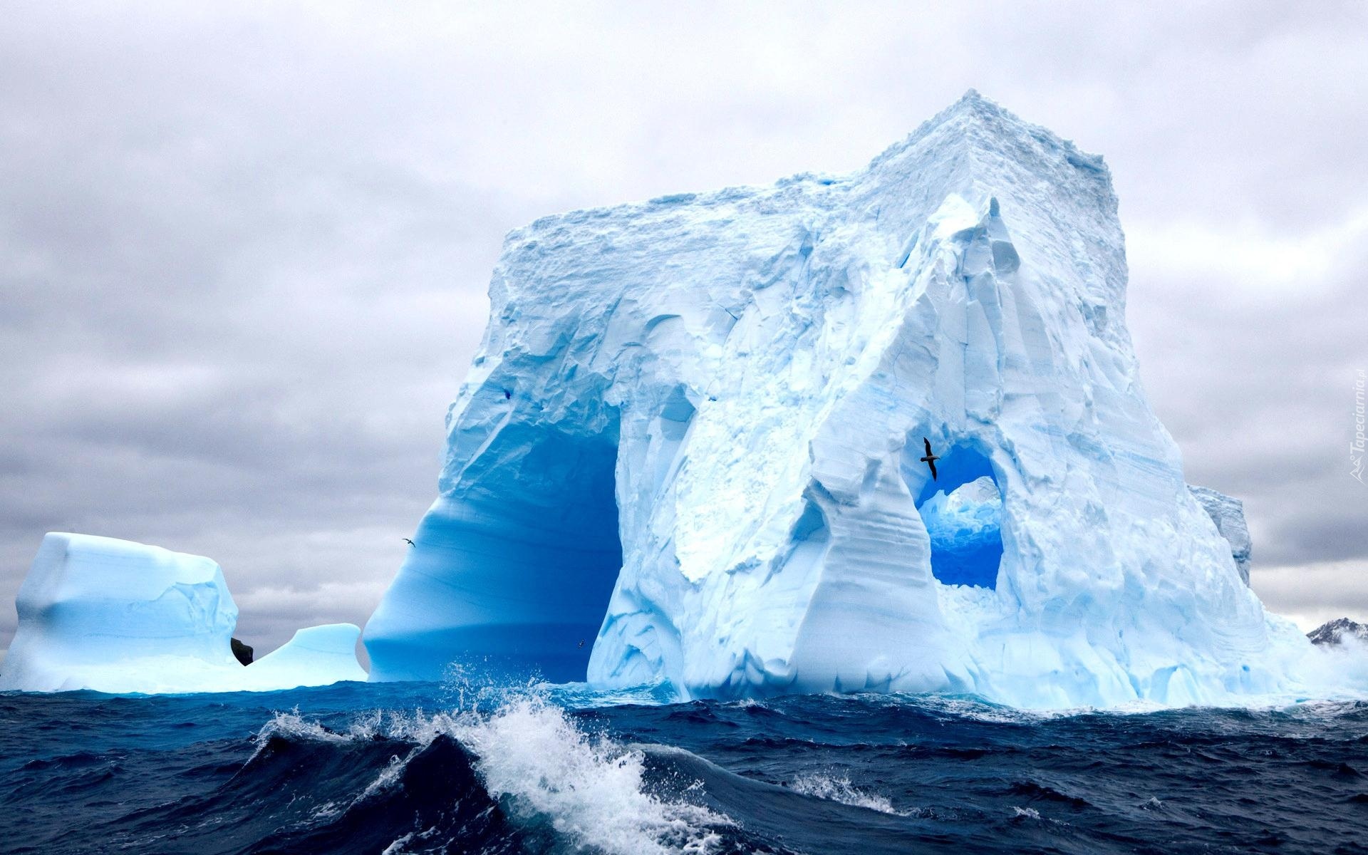 Edytor tapety: Góra, Lodowa, Morze, Fale, Ptaki