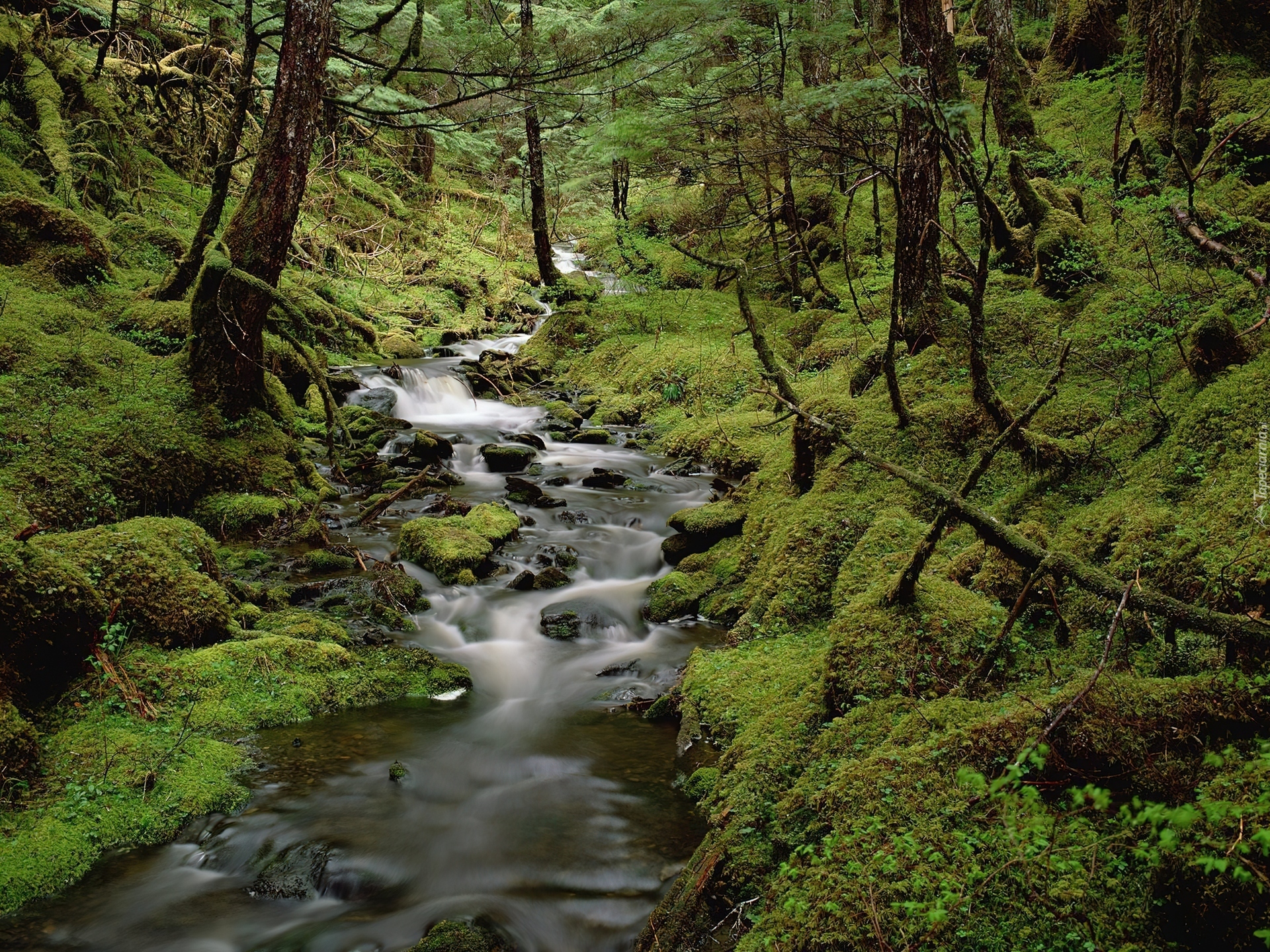 Edytor tapety: Strumyk, w, Lesie, Mech