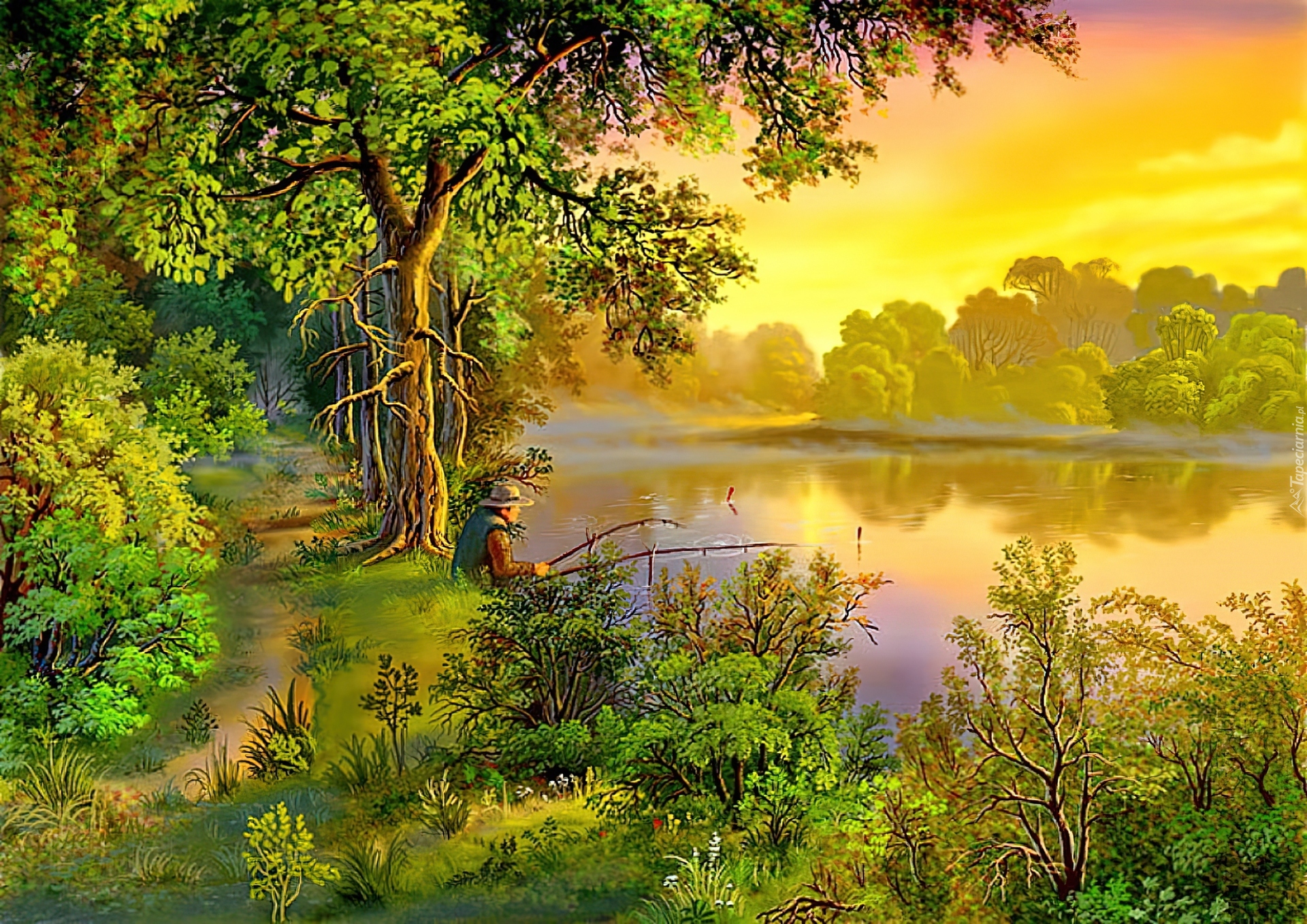 Edytor tapety: Jezioro, Dróżka, Wędkarz, Lato