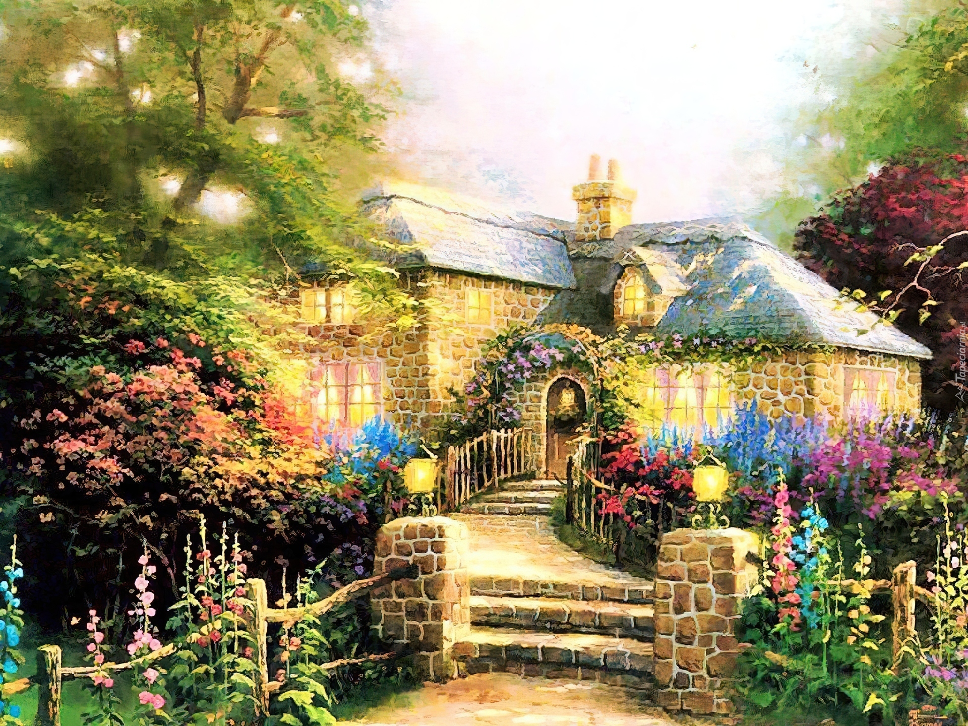 Edytor tapety: Dom, Ogród, Kwiaty, Płotek