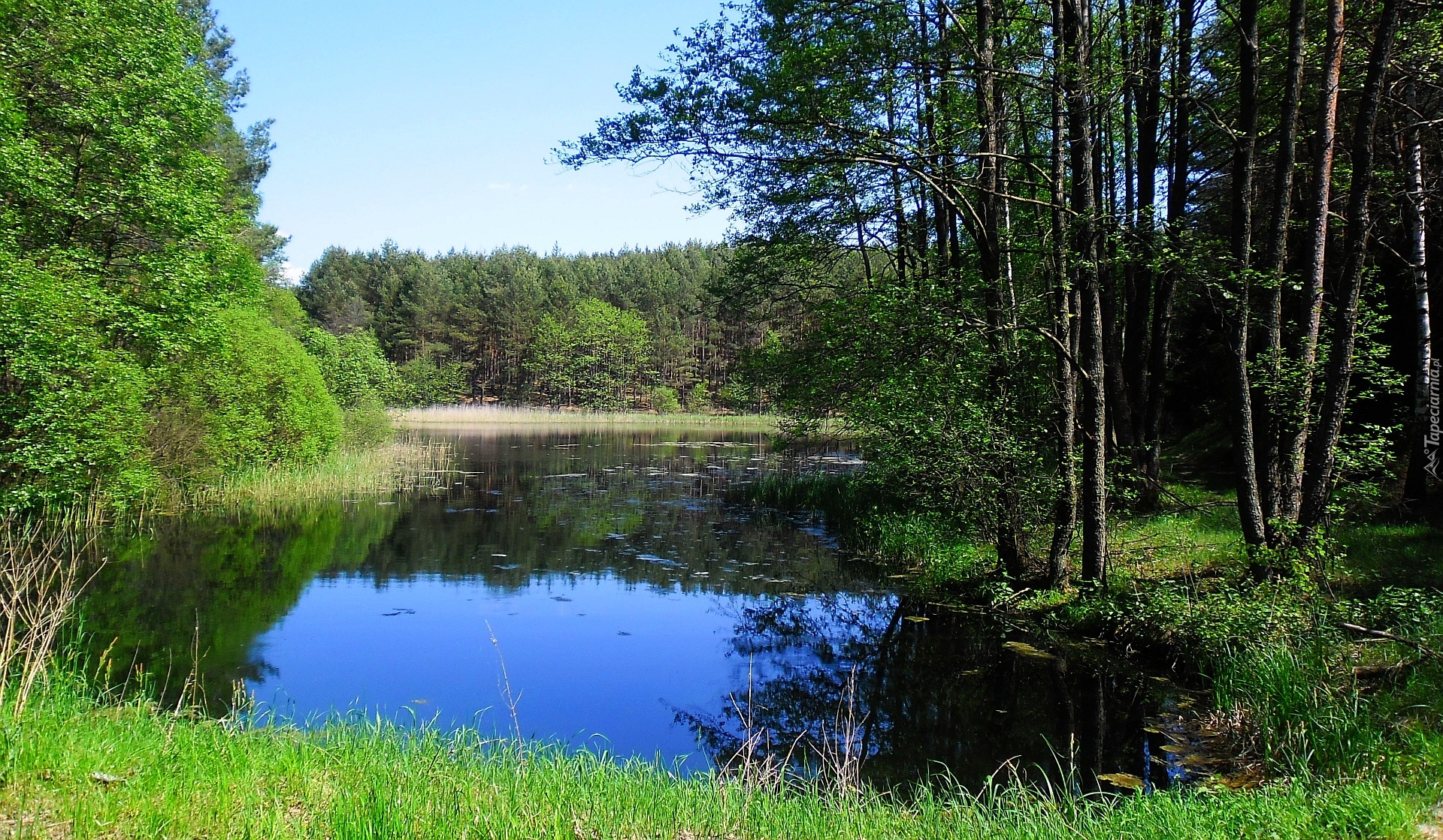 Edytor tapety: Wiosna, Drzewa, Jezioro