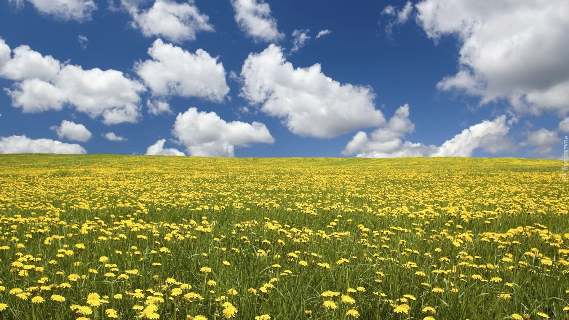Edytor tapety: Łąka, Mlecze, Chmury
