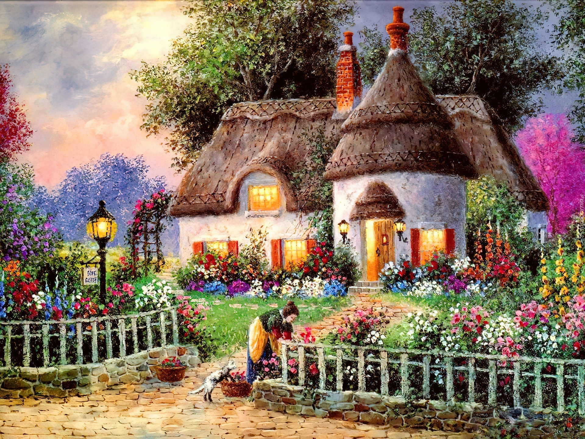 Edytor tapety: Dom, Ogród, Kwiaty, Płotek