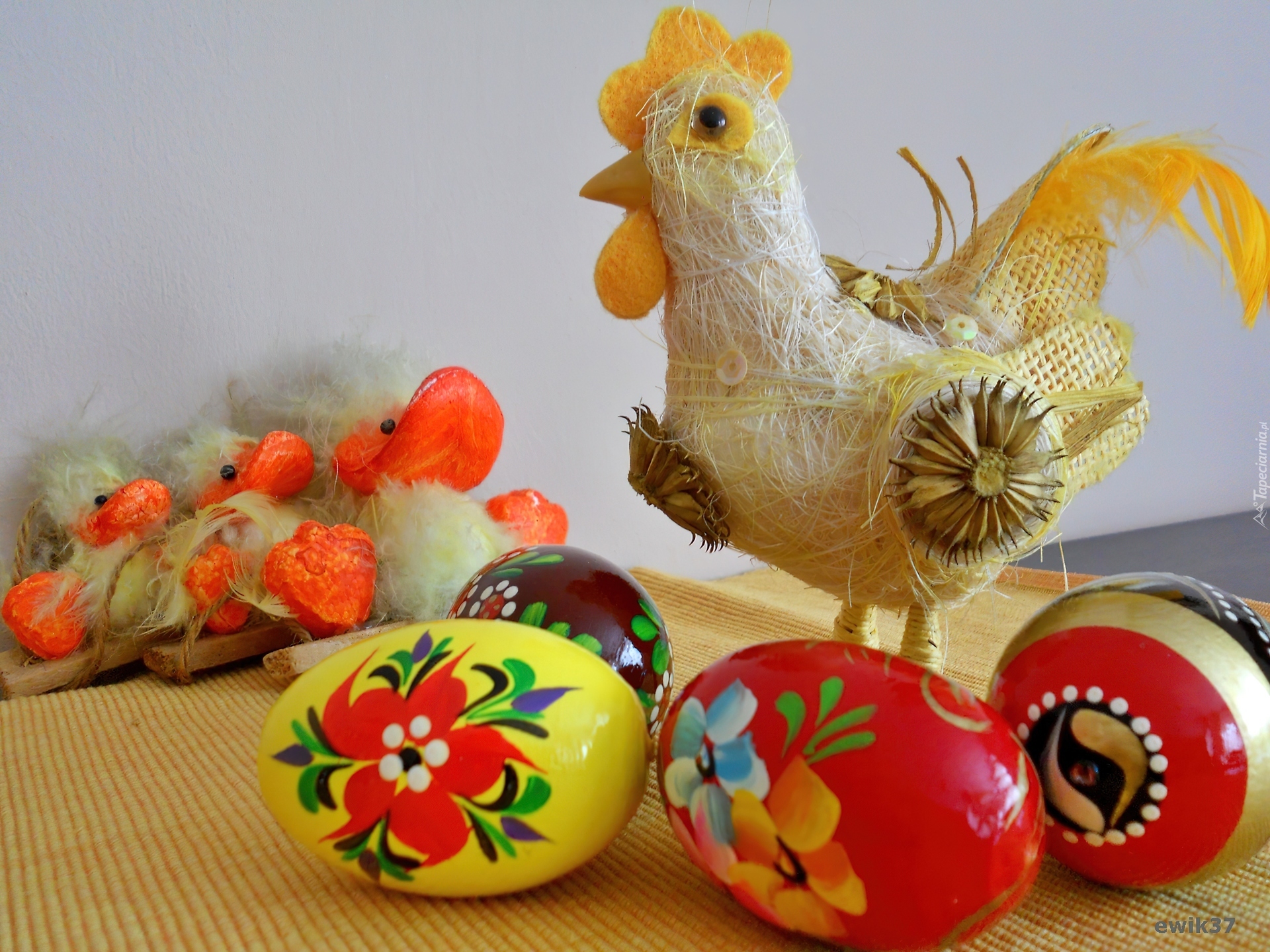 Edytor tapety: Kaczątka, Kura, Kolorowe, Jajka