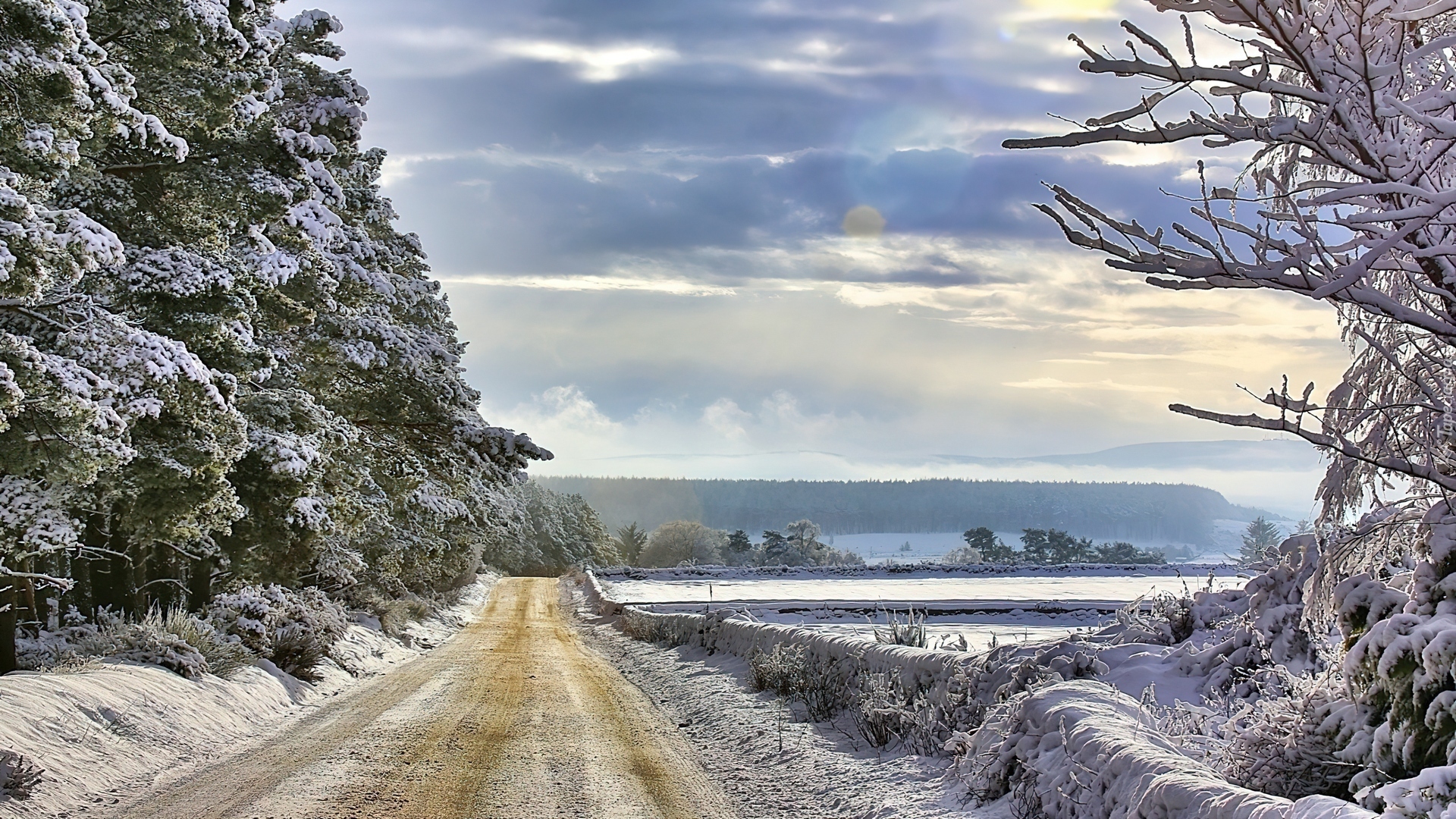 Edytor tapety: Zima, Droga, Oszronione, Drzewa