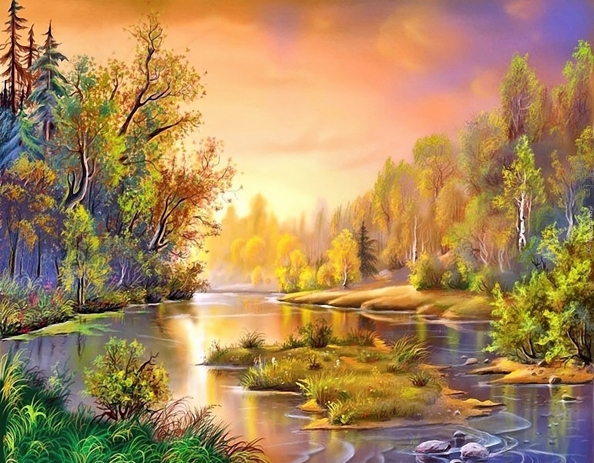 Edytor tapety: Rzeka, Las, Zachód, Słońca