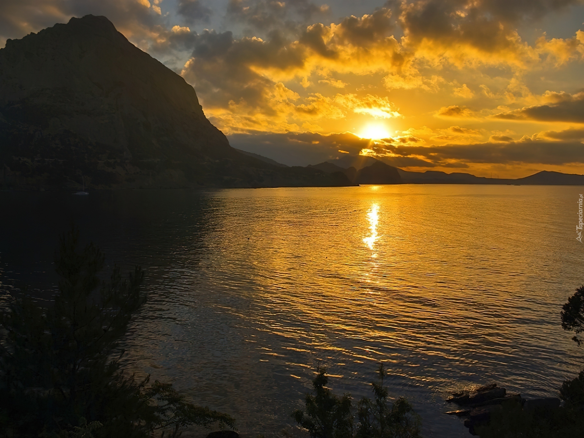 Edytor tapety: Jezioro, Góry, Zachód, Słońca