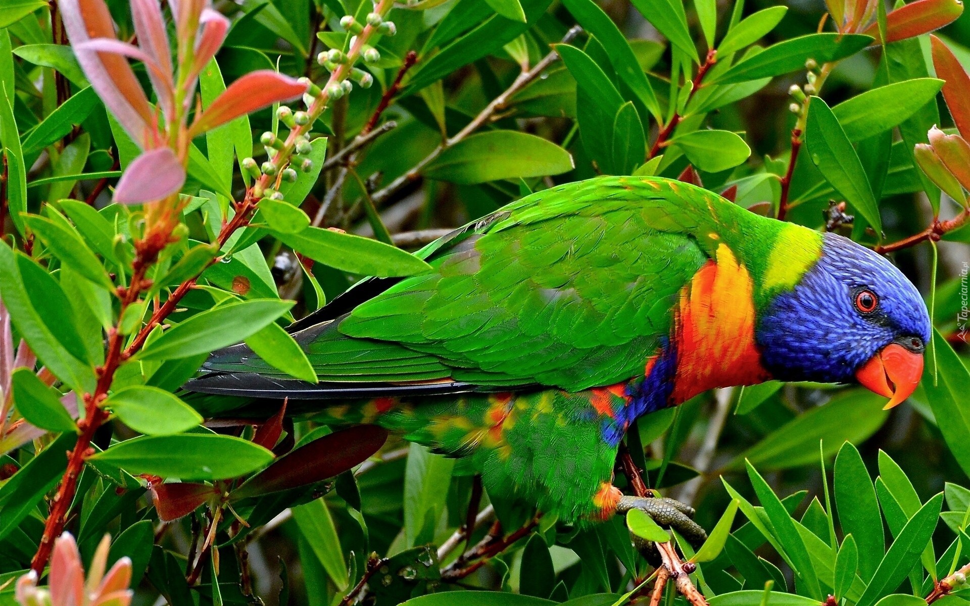 Edytor tapety: Papuga, Drzewo, Liście
