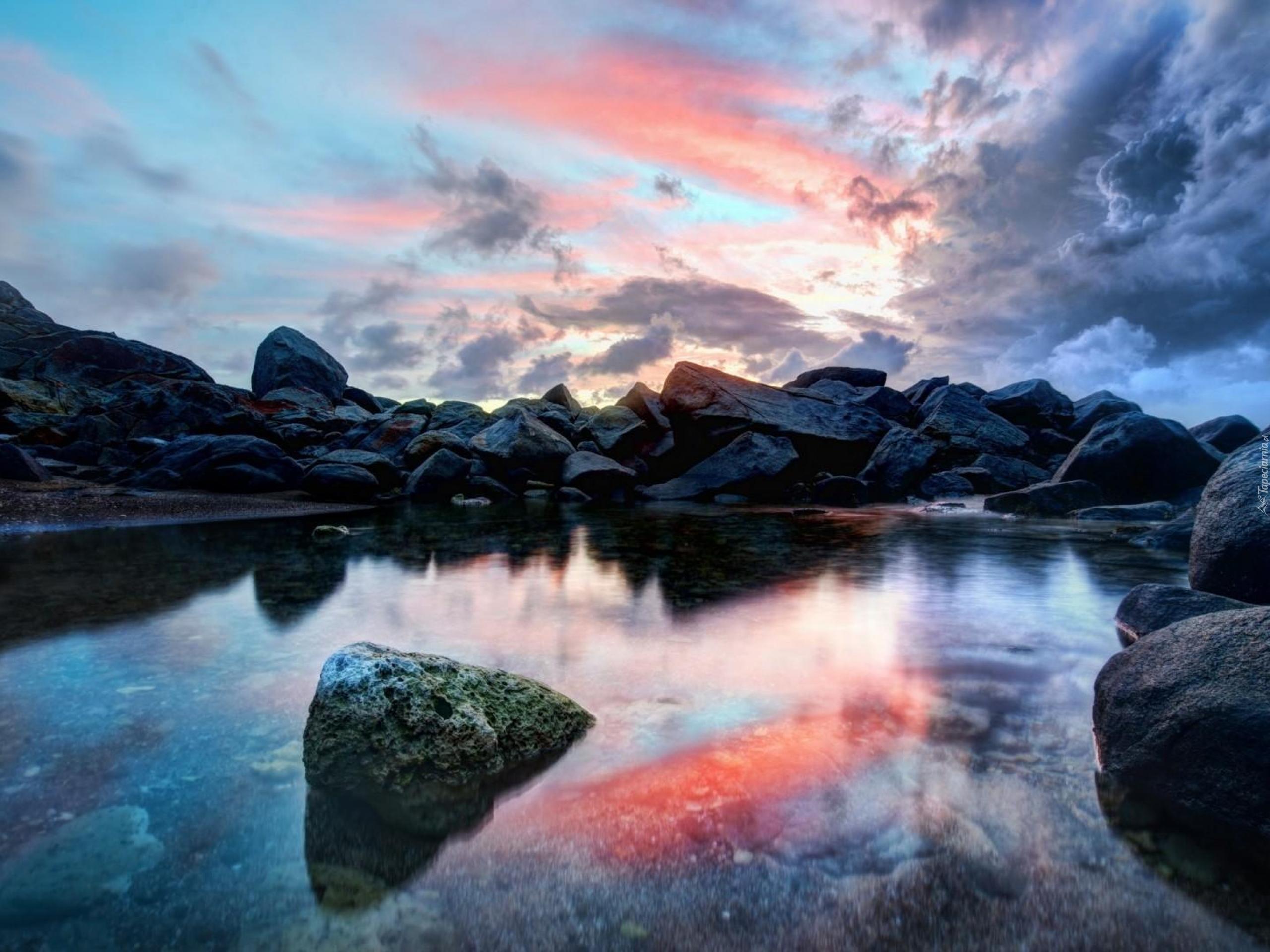 Edytor tapety: Chmury, Kamienie, Jezioro