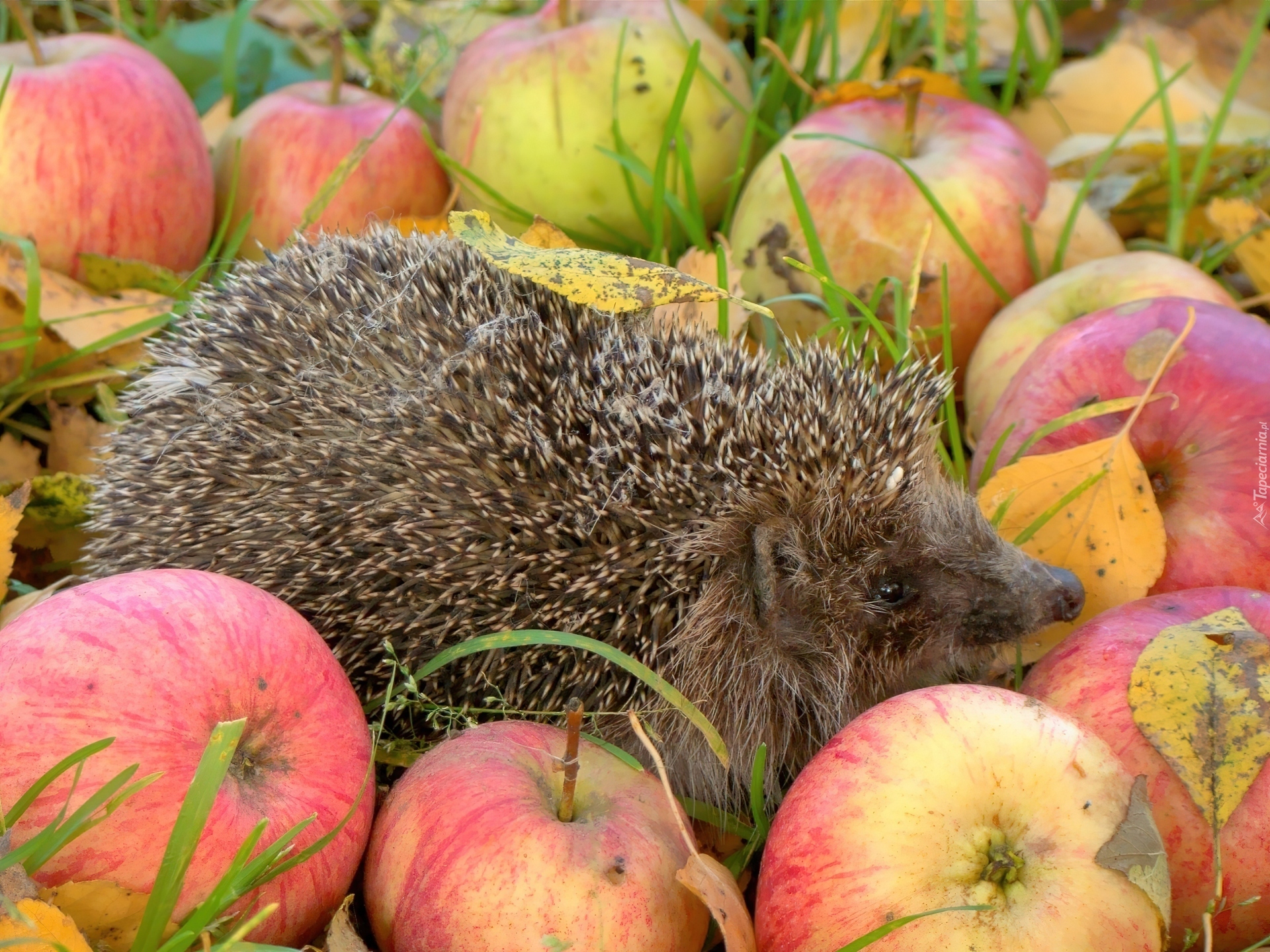 Edytor tapety: Jeż, Jabłka