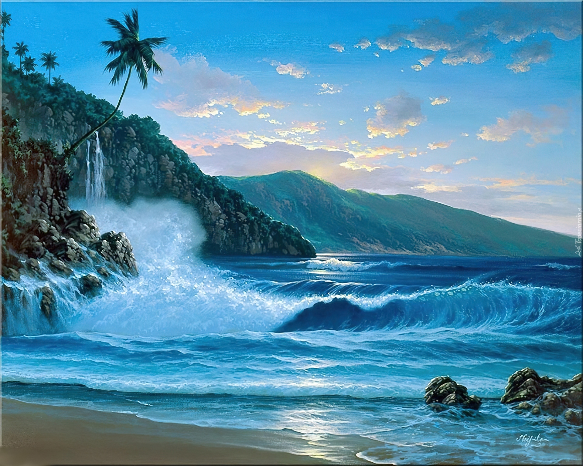 Edytor tapety: Morze, Fale, Góry